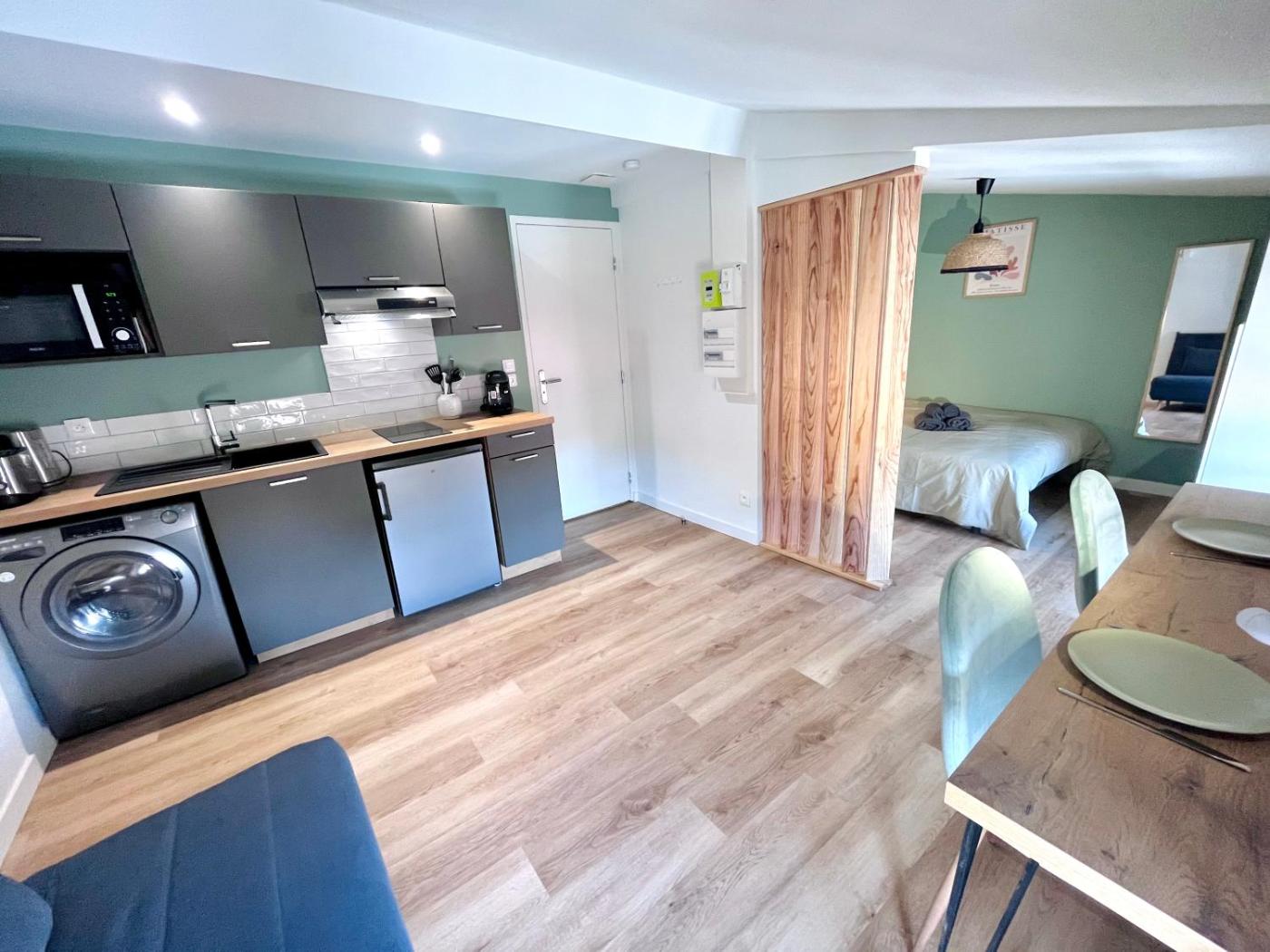 Studio Supérieur. Providing free toiletries, this studio includes a private bathroom with a shower and a hairdryer. Guests can make meals in the kitchen that is equipped with a stovetop, a refrigerator, kitchenware and an oven. The air-conditioned studio provides a flat-screen TV with streaming services, a washing machine, soundproof walls, a tea and coffee maker as well as a quiet street view. The unit offers 1 bed.