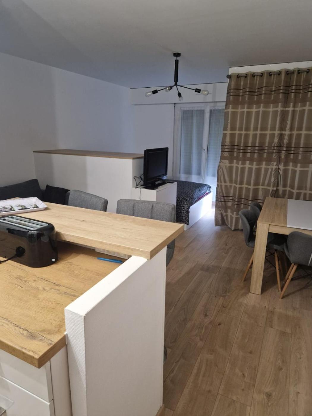 Appartement 1 Chambre. Boasting a private entrance, this apartment also includes 1 separate bedroom, 1 bathroom with a shower, a kitchen and a dining area. Meals can be prepared in the well-fitted kitchen, which is fitted with a stovetop, a refrigerator, kitchenware and an oven. The apartment has parquet floors, a seating area with a flat-screen TV, a washing machine, a tea and coffee maker as well as city views. The unit has 1 bed.