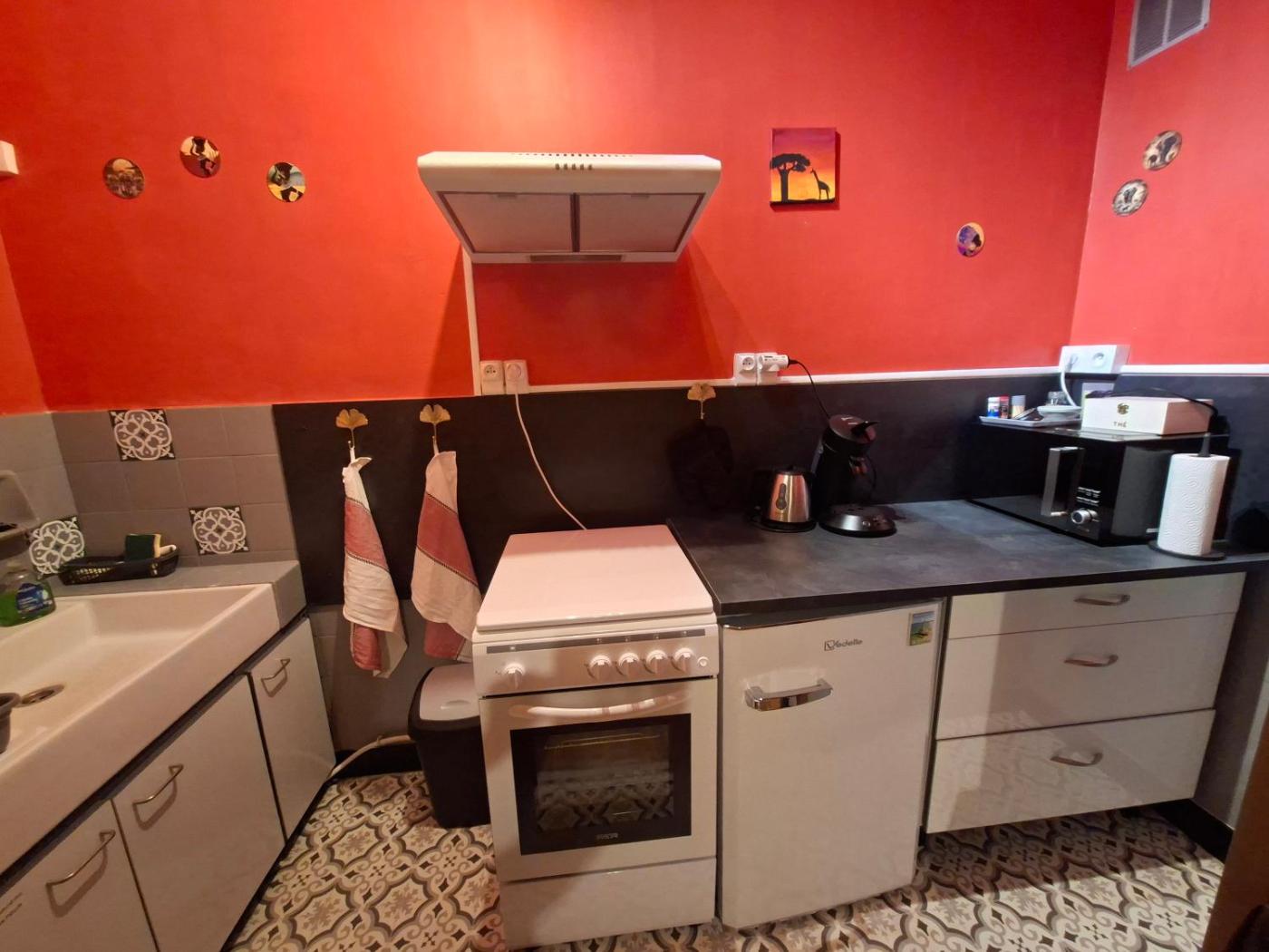 Maison 1 Chambre. Featuring 1 bedroom, this holiday home offers 1 bathroom with a shower, a seating area and terraceyou can relax. Guests will find a stovetop, a refrigerator, kitchenware and an oven in the well-equipped kitchenette. The holiday home also offers a barbecue. The holiday home provides a coffee machine, a dining area, a wardrobe, a flat-screen TV, as well as garden views. The unit has 1 bed. ;