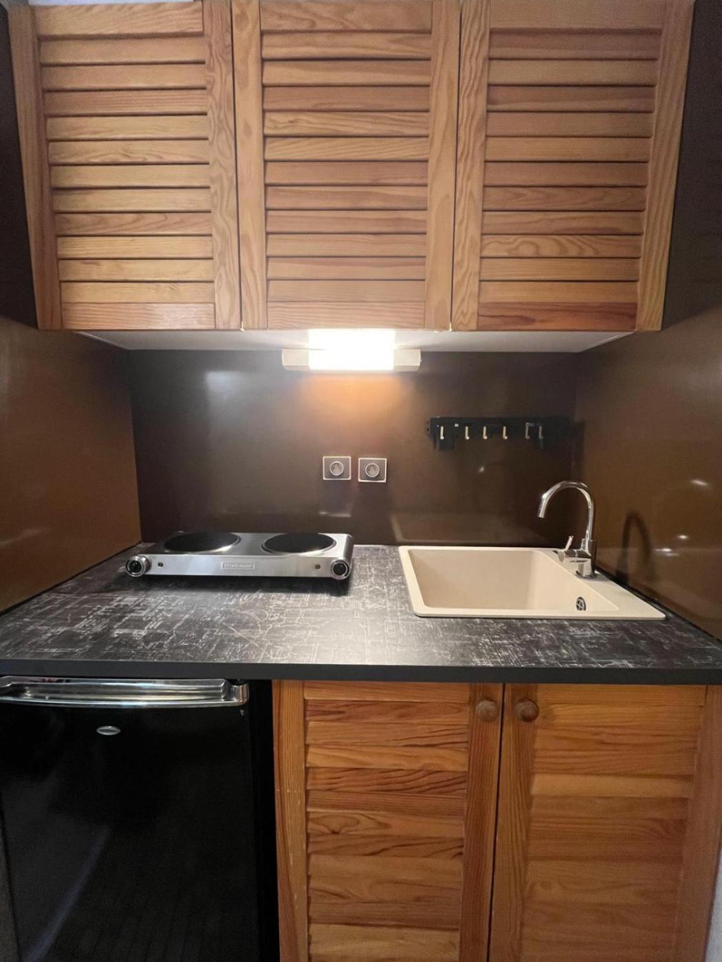Studio - Vue sur Montagne. Guests can make meals in the kitchen that features a stovetop, a refrigerator, kitchenware and a microwave. This studio is comprised of a flat-screen TV with streaming services, a private bathroom as well as a balcony with mountain views. The unit has 3 beds.