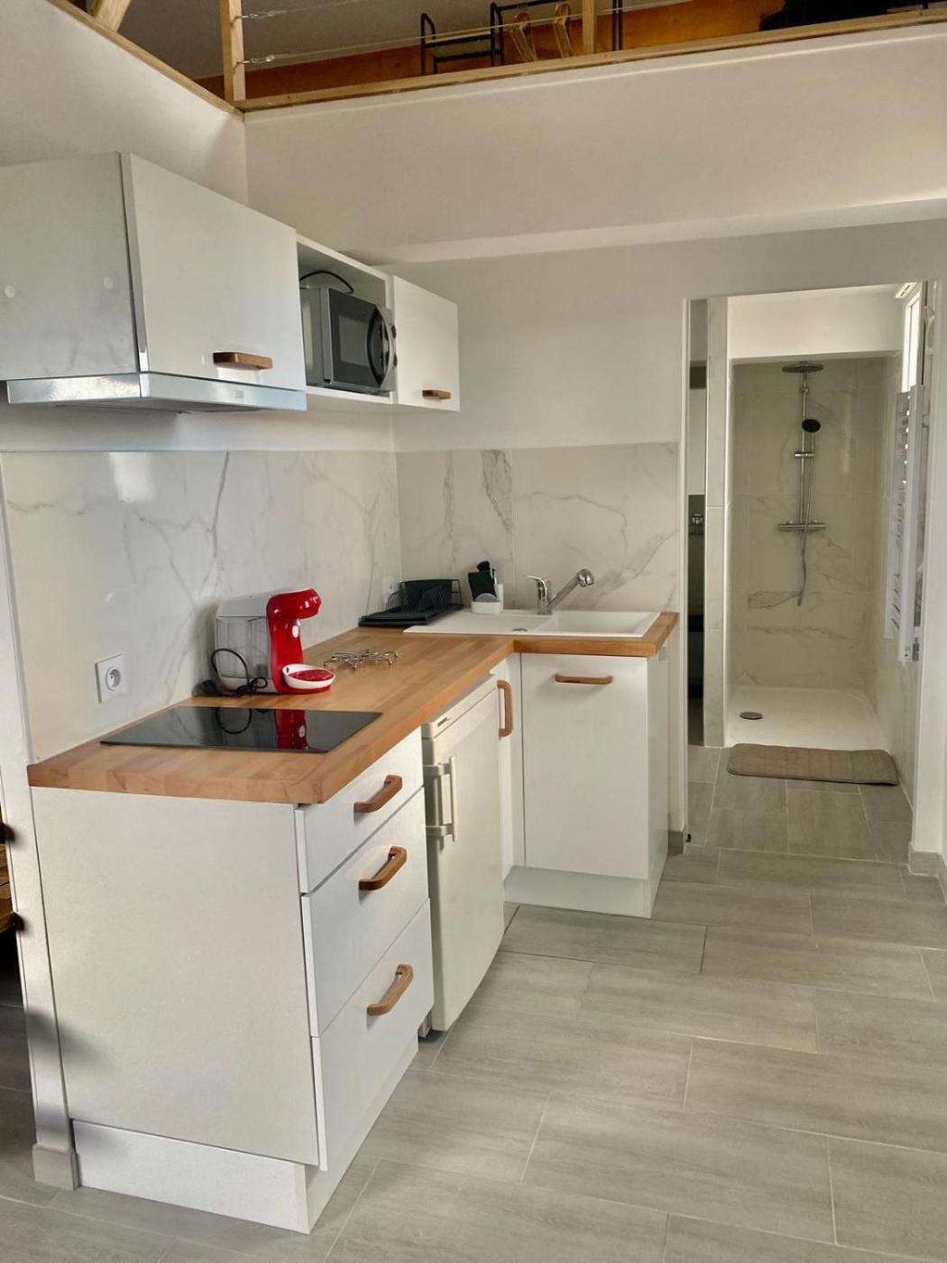 Maison 1 Chambre. Guests will find a stovetop, a refrigerator and a microwave in the kitchen. The holiday home also comes with a barbecue. The air-conditioned holiday home features a flat-screen TV with cable channels, a private entrance, a coffee machine, a seating area as well as garden views. The unit has 2 beds.