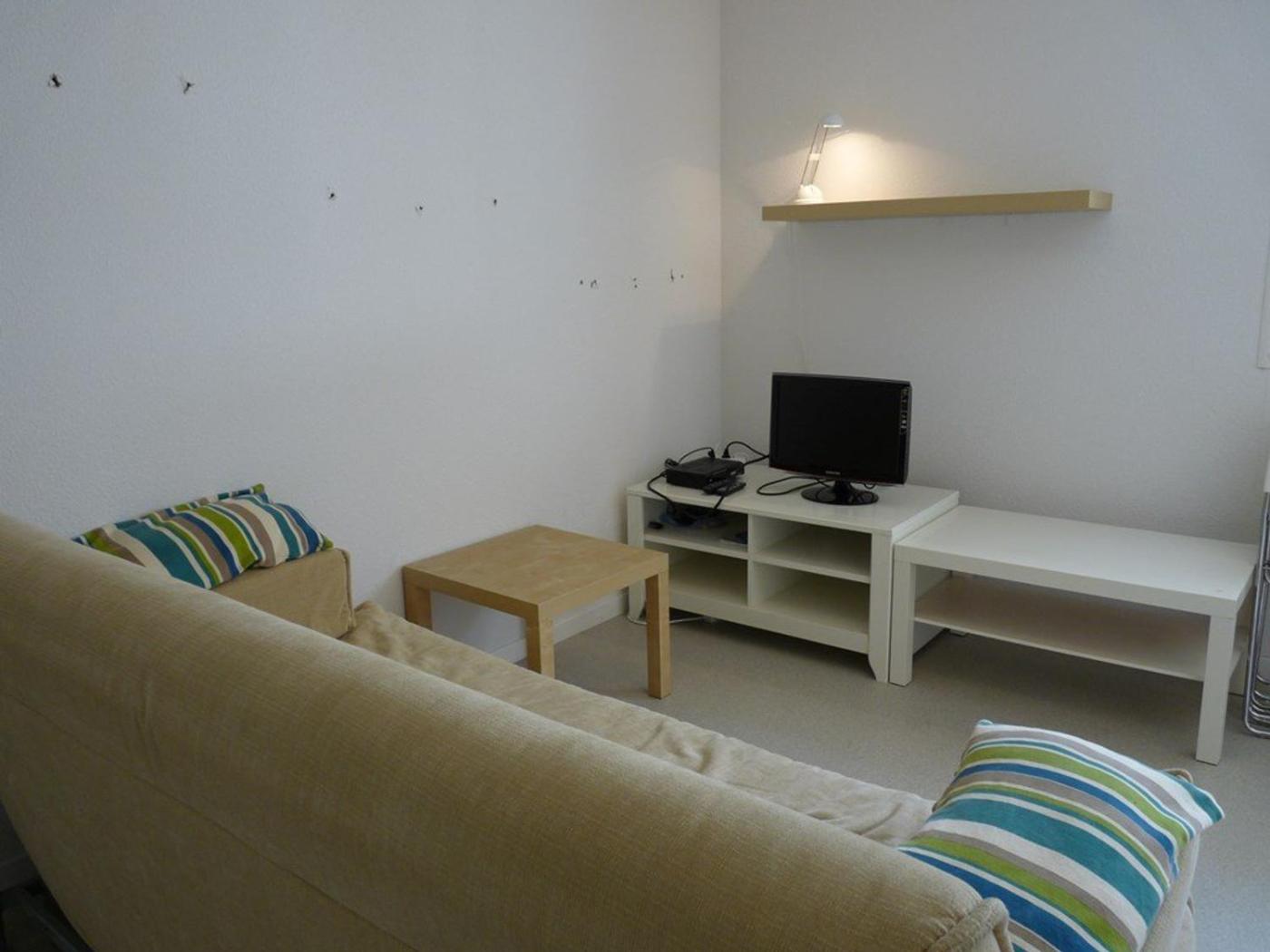 Cet appartement comprend une télévision. Vous pourrez profiter d’un coin repas ainsi que d’une cuisine pourvue d’un réfrigérateur, d’un lave-vaisselle et d’un micro-ondes.