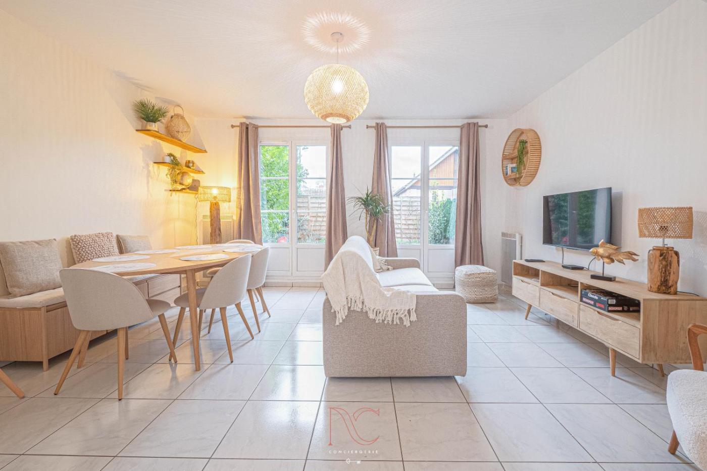 Appartement 2 Chambres. In the kitchen, guests will find a stovetop, a refrigerator, a dishwasher and an oven. The spacious apartment offers a flat-screen TV with streaming services, a washing machine, a tea and coffee maker, a seating area as well as garden views. The unit has 4 beds.