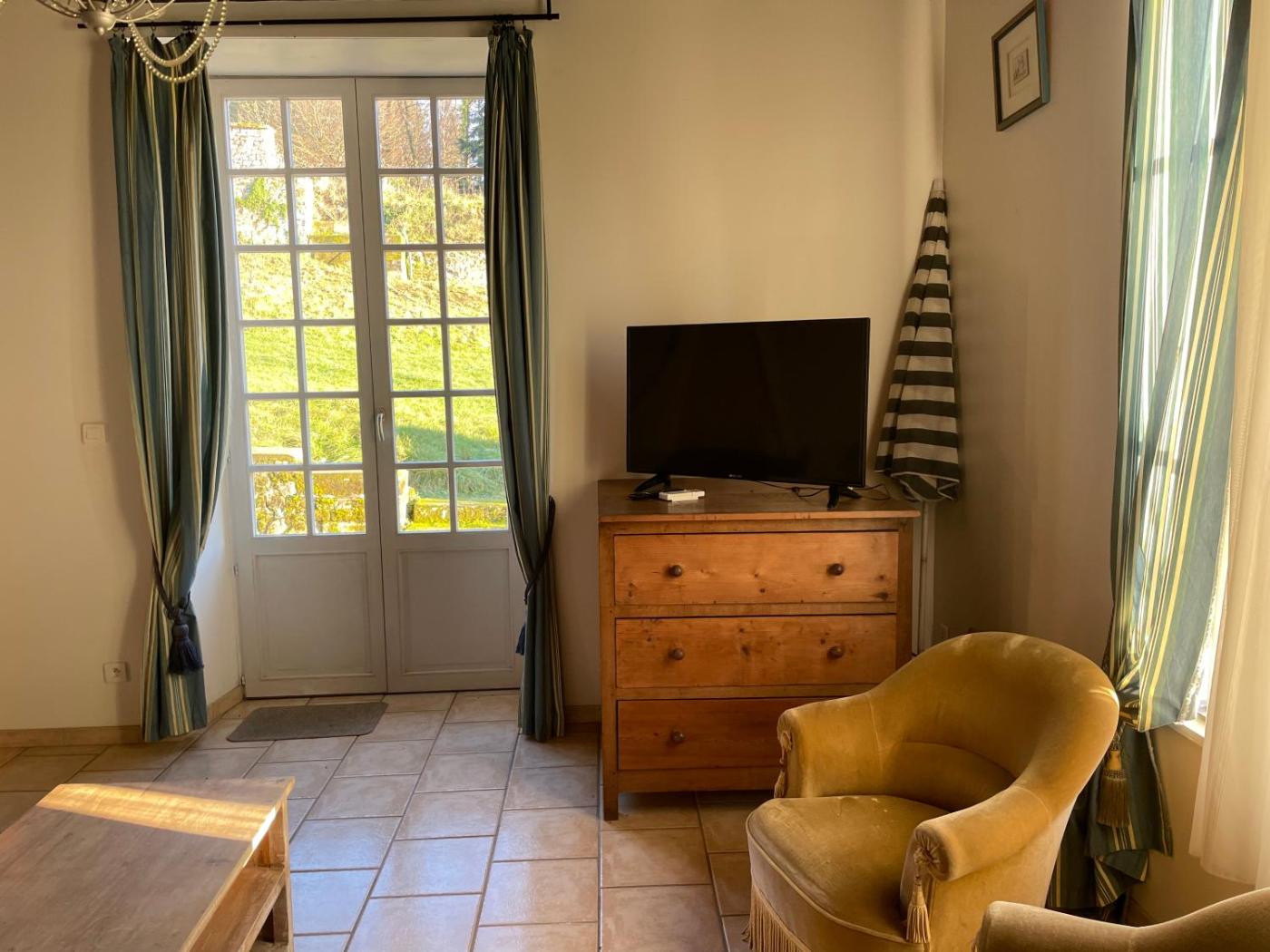 Chambre Double - Vue sur Jardin. Offrant une vue sur le jardin arboré et la rivière, cette suite comprend 2 chambres, une salle à manger et une kitchenette. Cet hébergement dispose dun mobilier dépoque, dun lit à baldaquin et dun secrétaire. La salle de bains est pourvue d’une douche. La deuxième chambre possède une kitchenette entièrement équipée et un canapé. Vous profiterez aussi dune télévision, dune connexion Wi-Fi gratuite et dune terrasse meublée. Les animaux domestiques ne sont pas admis dans cette suite. ;