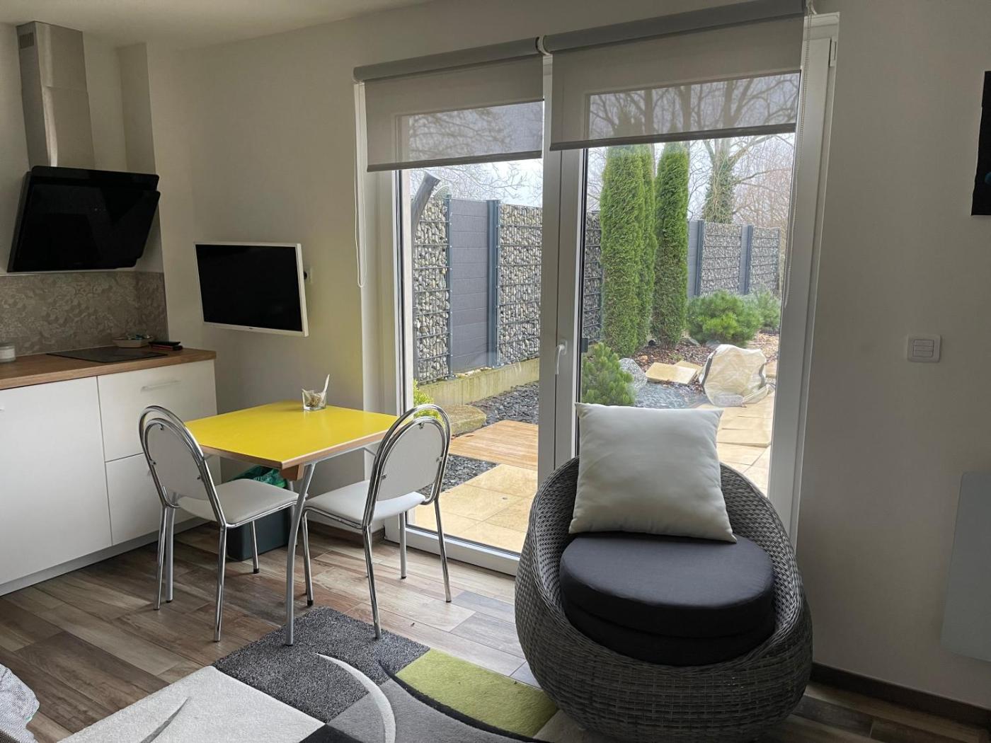 Appartement 1 Chambre. The well-fitted kitchenette features a stovetop, a refrigerator, kitchenware and a microwave. Featuring a terrace with garden views, this apartment also offers a private entrance and a flat-screen TV. The unit offers 1 bed.