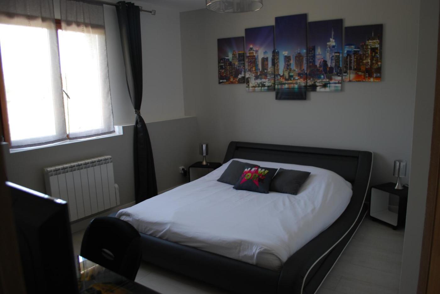 Chambre Familiale. The family room features a private entrance and a tiled floor, as well as a private bathroom boasting a walk-in shower. This family room provides heating and a flat-screen TV. The unit has 2 beds. ;
