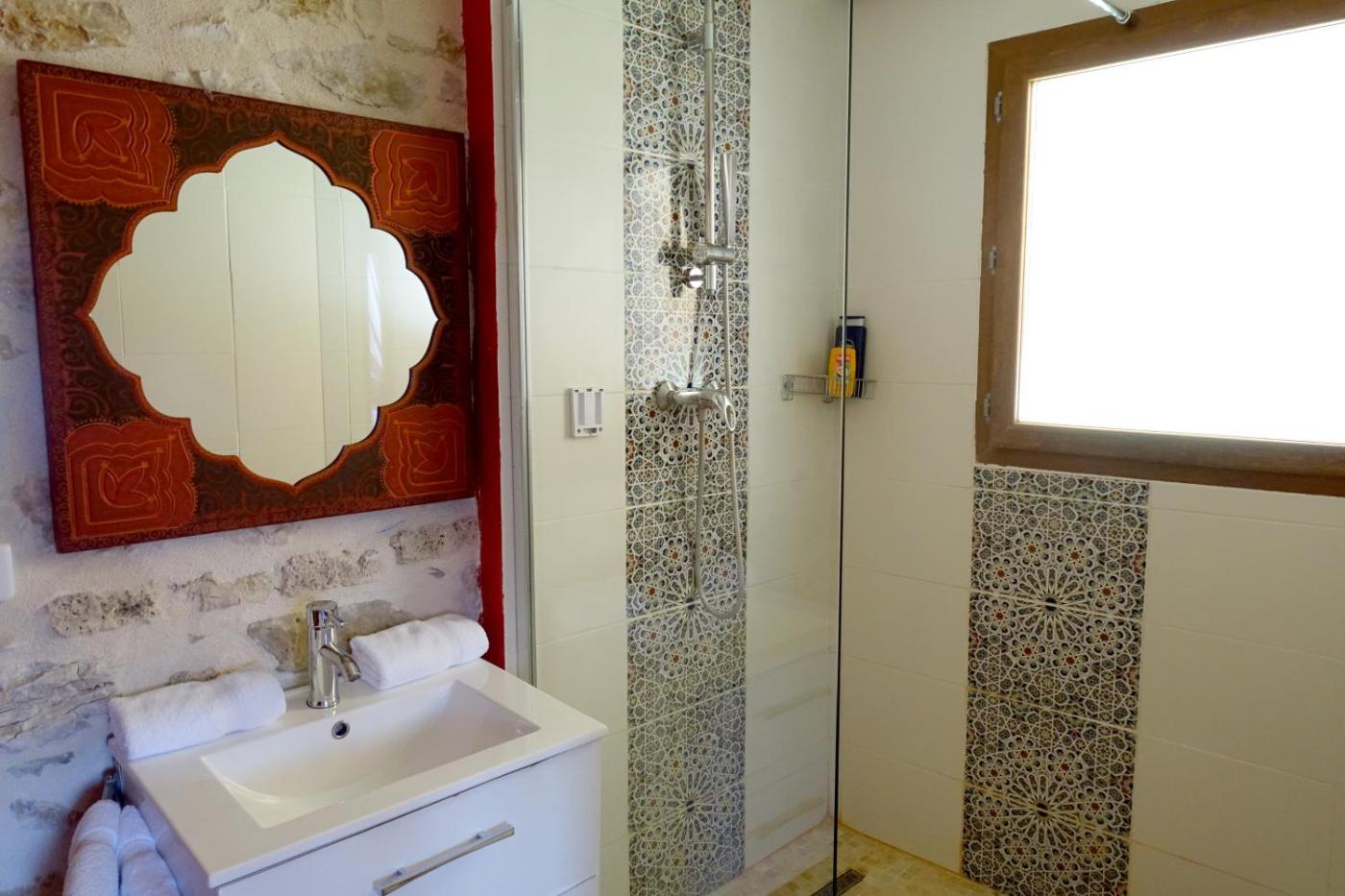Chambre Double avec Terrasse. The double room offers a private entrance, a tiled floor, a terrace with garden views as well as a private bathroom featuring a walk-in shower. The unit offers 1 bed. ;