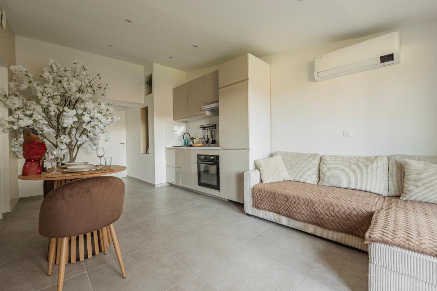 Appartement 1 Chambre. Guests will have a special experience as this apartment offers a hot tub and a spa bath. Guests will find a stovetop, a refrigerator, a dishwasher and kitchenware in the well-equipped kitchen. The apartment also features a barbecue. This air-conditioned apartment includes a dining area, a flat-screen TV with streaming services a washing machine and a terrace. The unit has 1 bed.