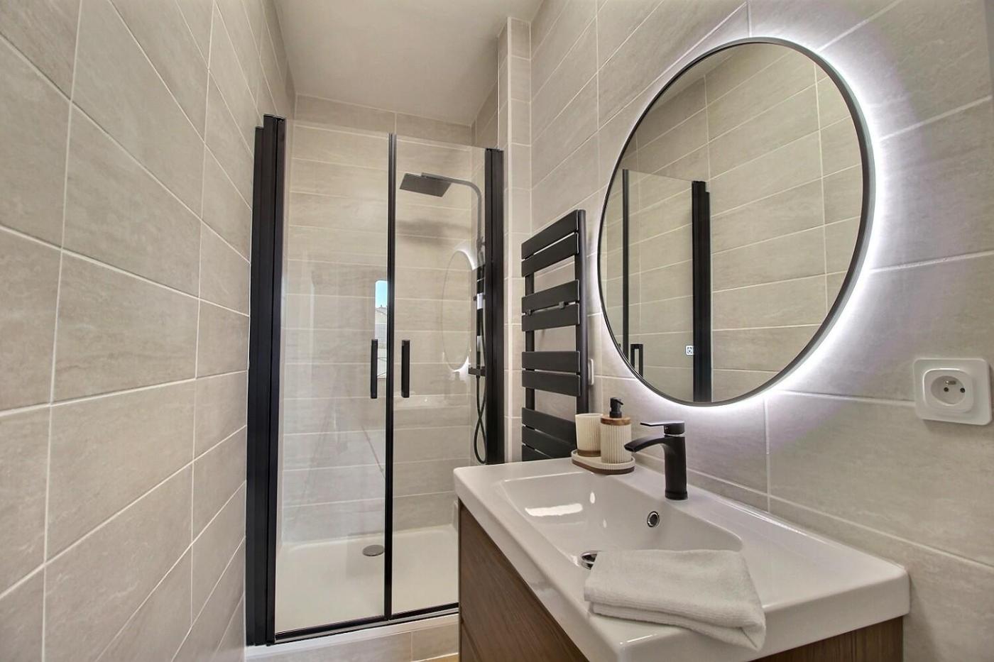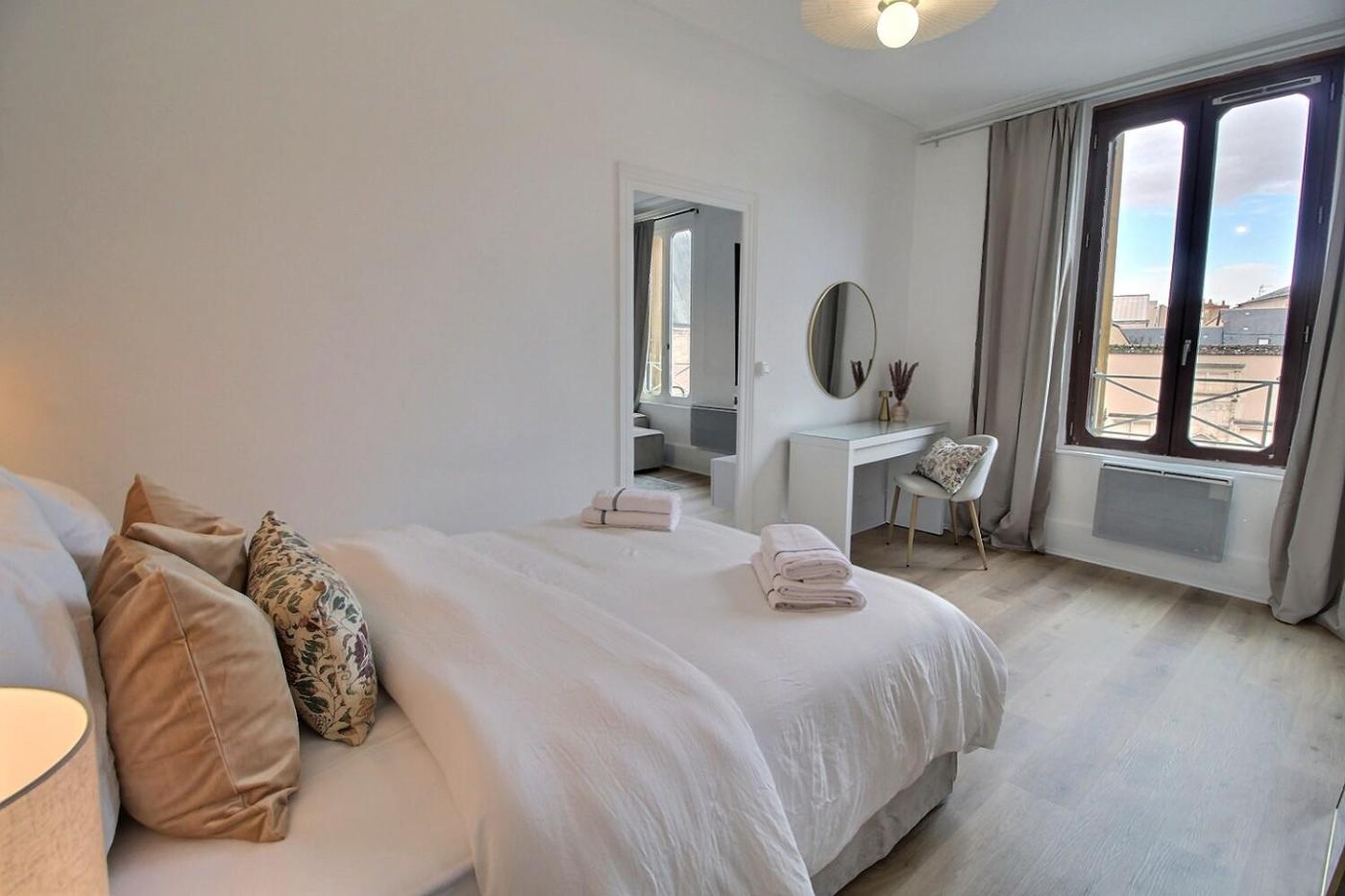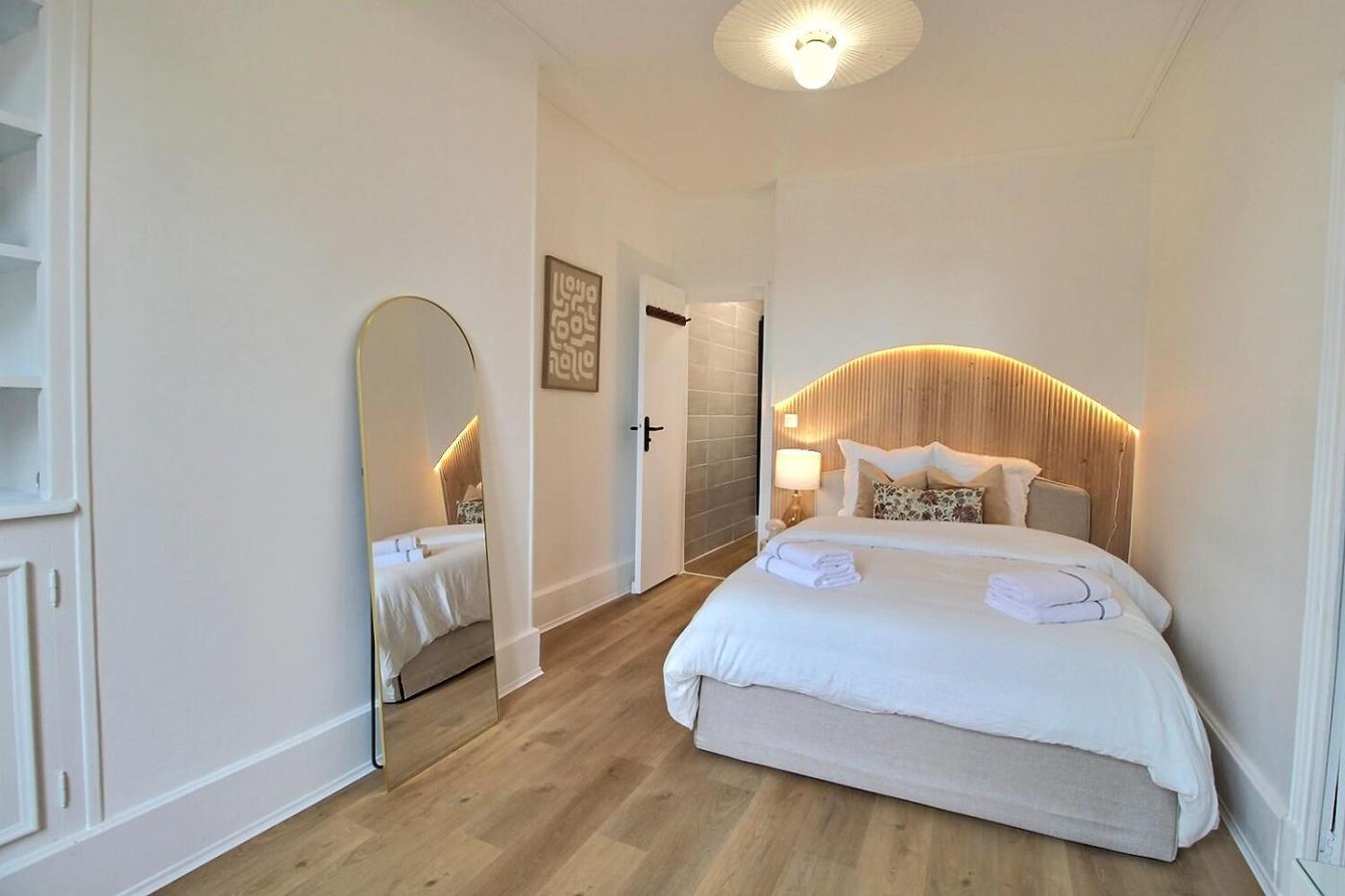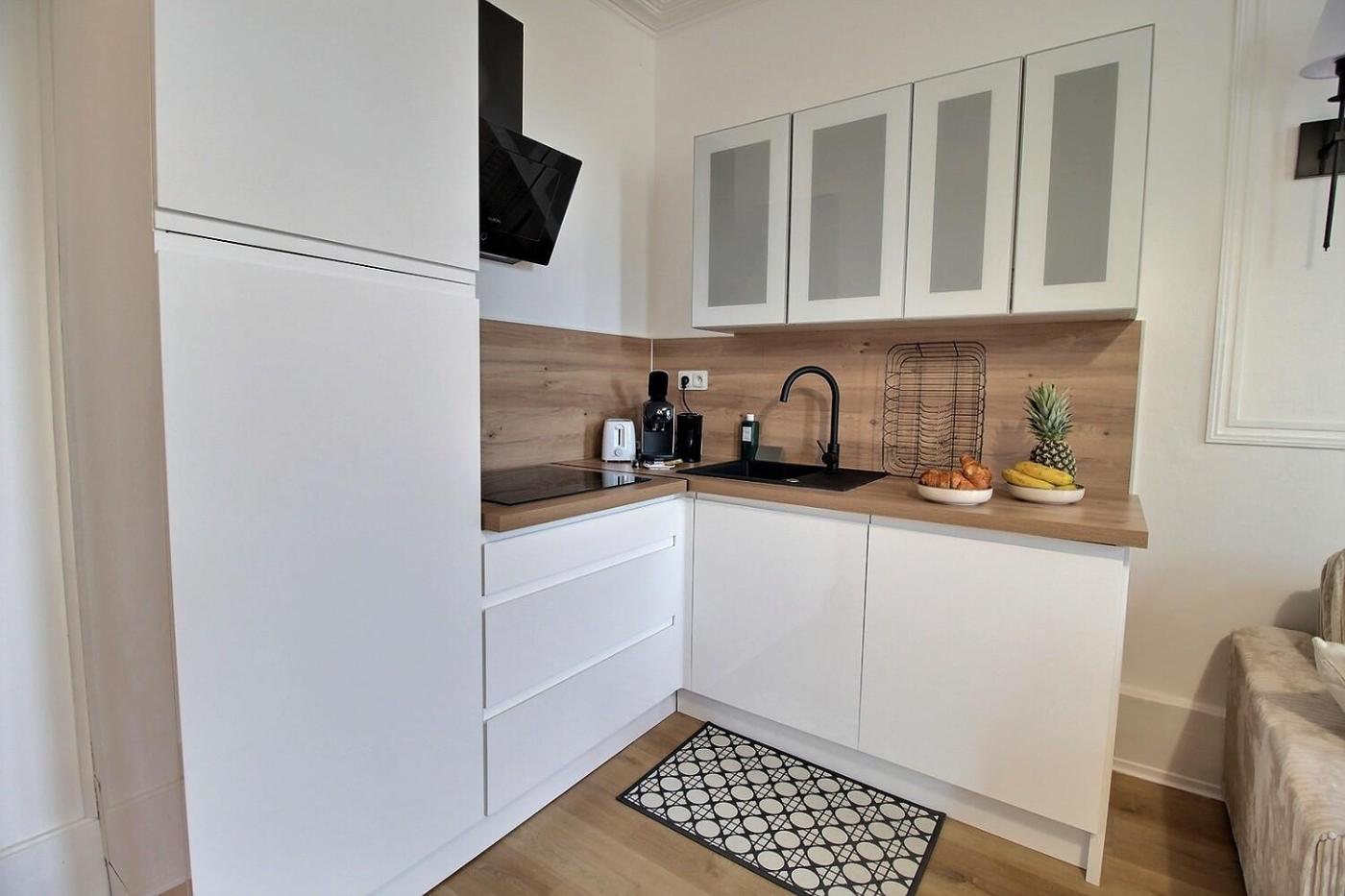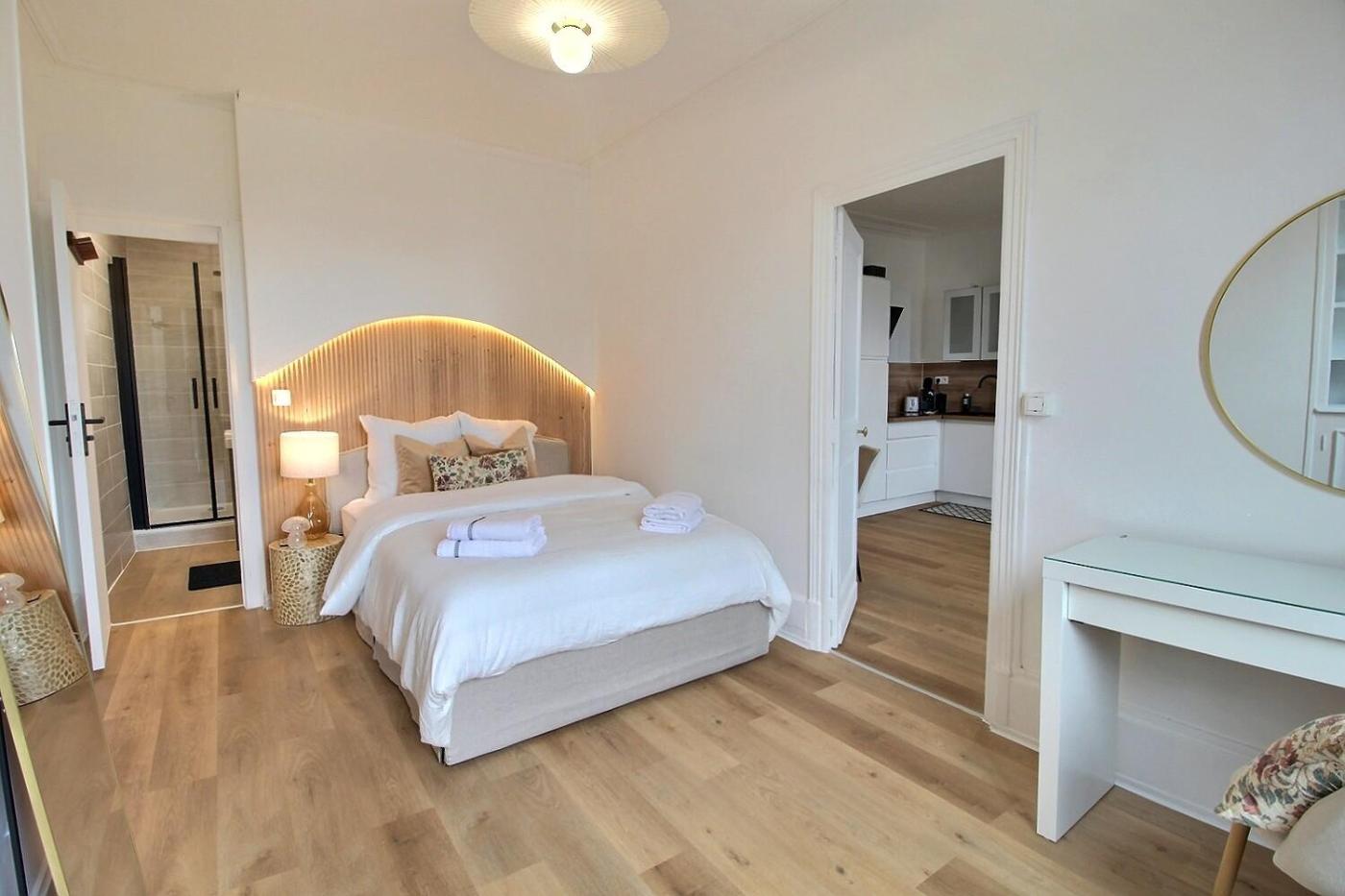 Appartement 1 Chambre. This apartment consists of 1 living room, 1 separate bedroom and 1 bathroom with a shower and a hairdryer. The fully equipped kitchen has a stovetop, a refrigerator, an oven and a microwave. The apartment features parquet floors, a seating area with a flat-screen TV with streaming services, a coffee machine, a wardrobe, as well as a sofa. The unit offers 2 beds.