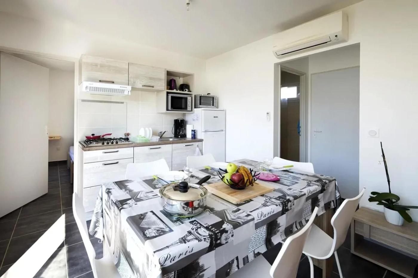 Maison de Vacances 2 Chambres. This holiday home features a spa bath. Featuring a private entrance, this air-conditioned holiday home comprises 2 bedrooms and 1 bathroom with a shower. Guests will find a stovetop, a refrigerator, an oven and a microwave in the kitchen. The holiday home also provides guests with a barbecue. The holiday home is furnished with a desk and a seating area and provides a washing machine, a tea and coffee maker and garden views. The unit offers 3 beds.