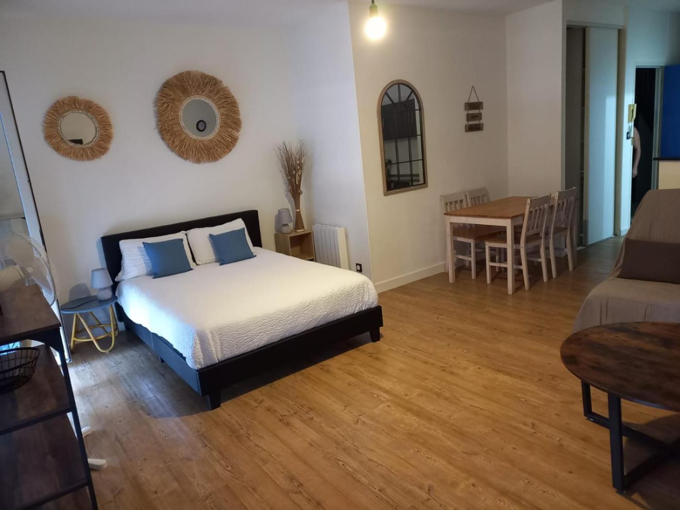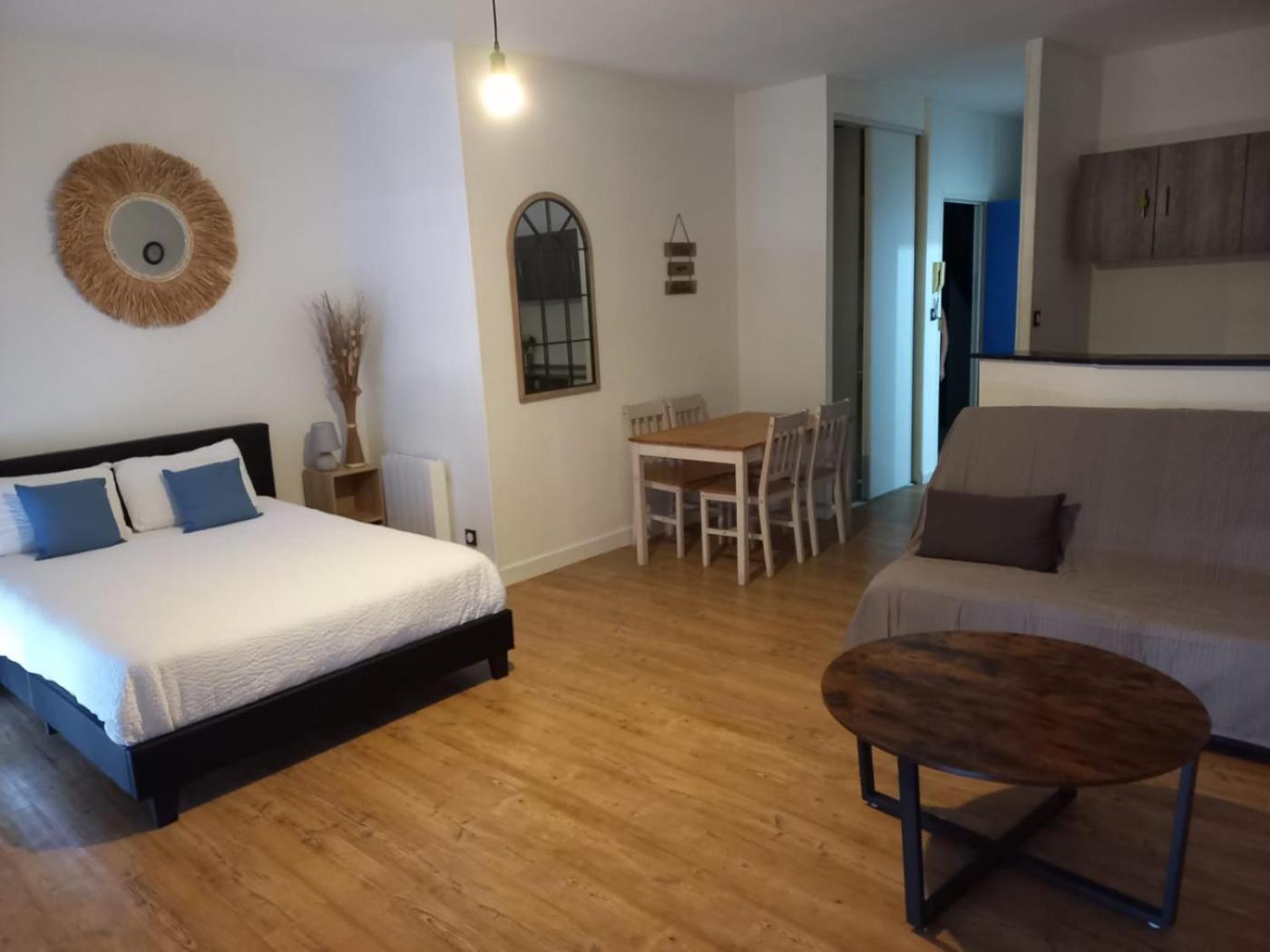 Appartement 1 Chambre. This apartment features 1 living room, 1 separate bedroom and 1 bathroom with a shower and free toiletries. The fully equipped kitchen has a stovetop, a refrigerator, kitchenware and an oven. The air-conditioned apartment features a flat-screen TV with satellite channels, a washing machine, a tea and coffee maker, a dining area as well as city views. The unit has 2 beds. ;