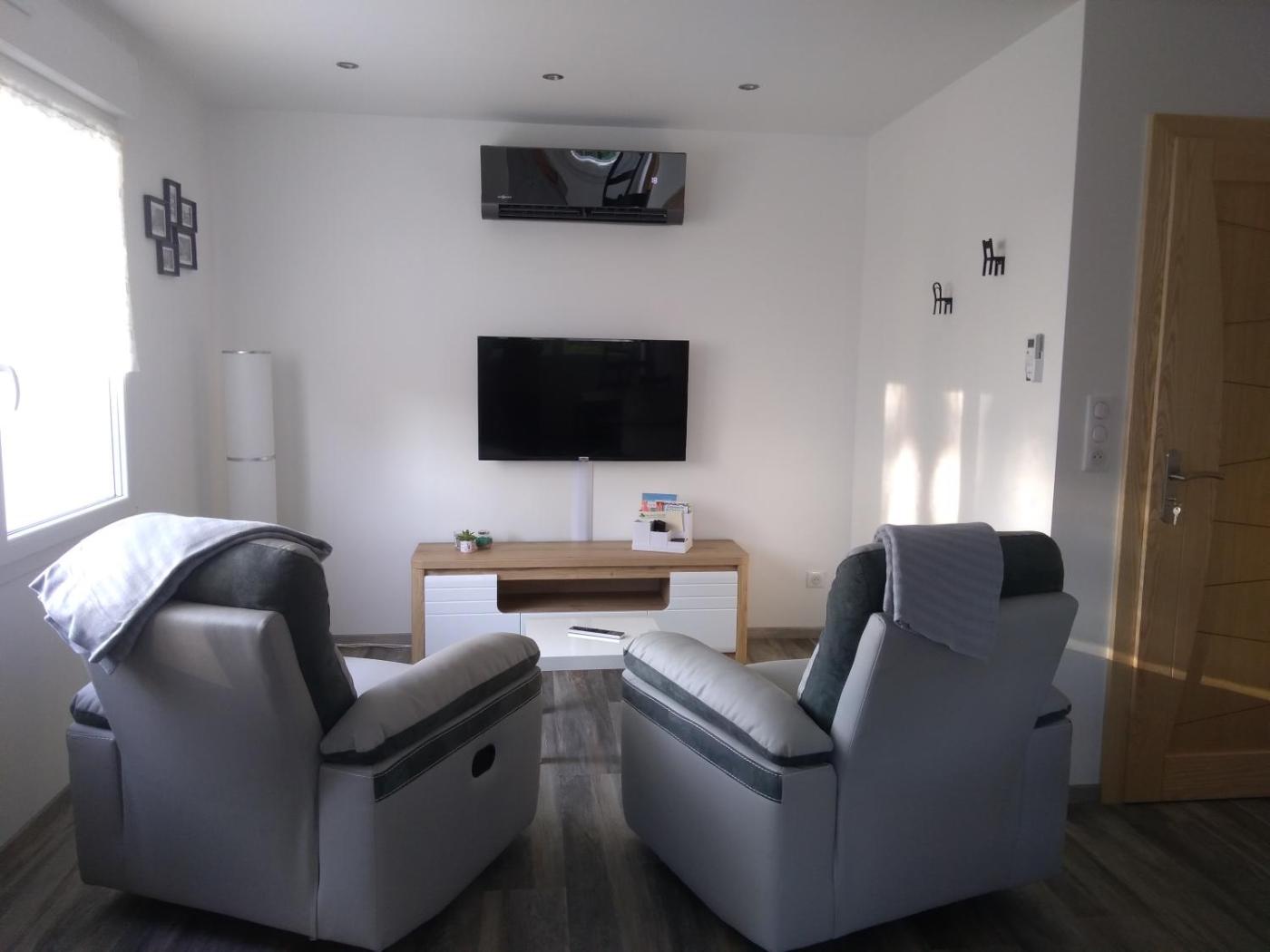 Appartement 1 Chambre. The air-conditioned apartment features 1 bedroom and 1 bathroom with a shower and a hairdryer. Guests can make meals in the kitchen that is equipped with a stovetop, a refrigerator, a dishwasher and kitchenware. Featuring a terrace with garden views, this apartment also provides a washing machine and a flat-screen TV. The unit offers 1 bed. ;