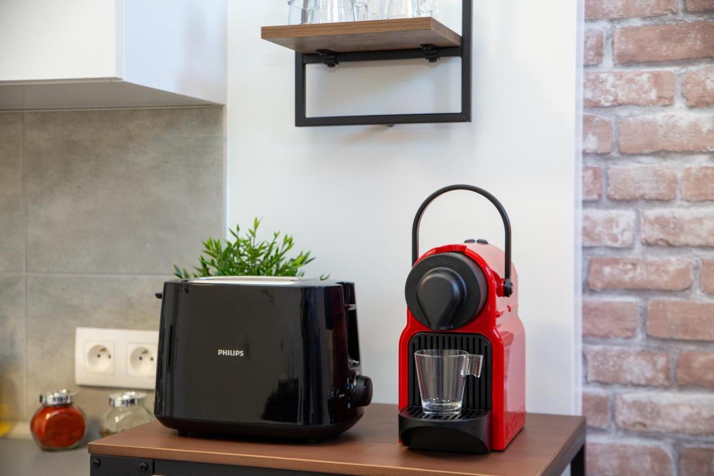 Cet appartement se compose de 1 chambre, dun salon, dune cuisine entièrement équipée avec un réfrigérateur et une machine à café, ainsi que de 1 salle de bains avec une douche et des articles de toilette gratuits. Des serviettes et du linge de lit sont à votre disposition.
