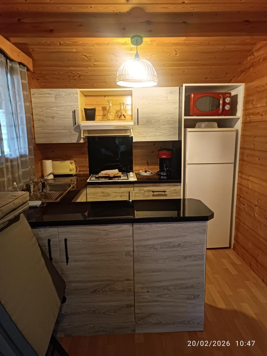 Un réfrigérateur et une bouilloire sont également à disposition.