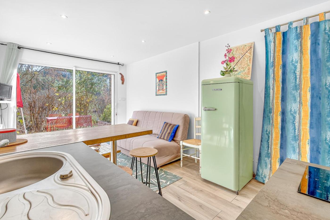 Appartement 1 Chambre - Vue sur Jardin. Boasting a private entrance, this apartment features 1 living room, 1 separate bedroom and 1 bathroom with a shower and a hairdryer. Guests will find kitchenware, a microwave and a toaster in the kitchen. The apartment also comes with a barbecue. Featuring a terrace with garden views, this apartment also features a coffee machine and a TV. The unit has 2 beds.
