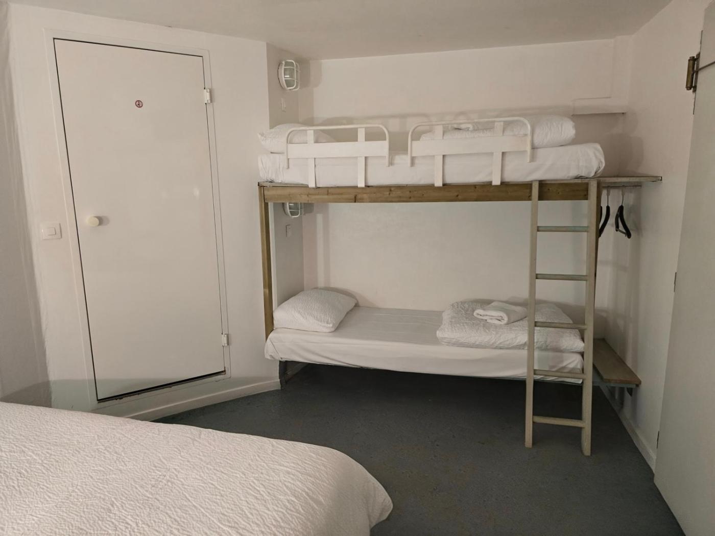 Chambre Quadruple avec 1 Lit Double et 2 Lits Simples. Cette chambre dispose d’un lit double, d’un lit simple, d’un lit superposé, dune connexion Wi-Fi gratuite, dune télévision à écran plat et dune salle de bains privative. ;