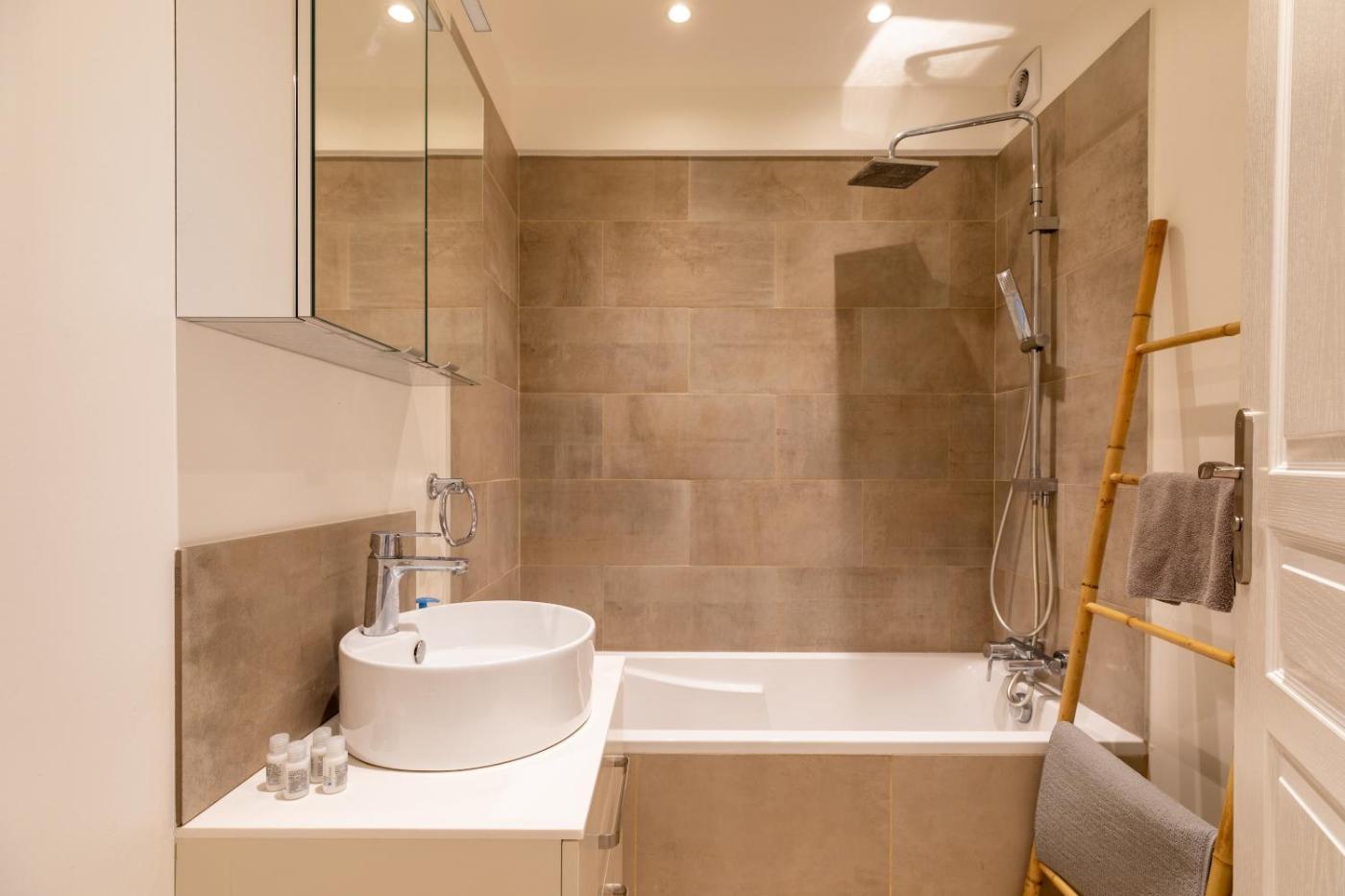 Appartement 1 Chambre. This air-conditioned apartment comprises 1 living room, 1 separate bedroom and 1 bathroom with a hairdryer. The well-fitted kitchen has a refrigerator, a dishwasher, an oven and a microwave. This apartment features a washing machine, a tea and coffee maker, a flat-screen TV and a terrace. The unit offers 2 beds.