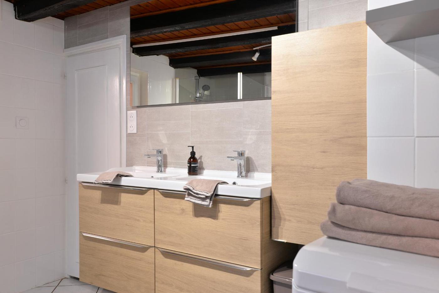 Maison 2 Chambres. Featuring a private entrance, this air-conditioned holiday home consists of 1 living room, 2 separate bedrooms and 1 bathroom with a shower and a hairdryer. In the well-equipped kitchen, guests will find a stovetop, a refrigerator, a dishwasher and kitchenware. The holiday home features parquet floors, a seating area with a flat-screen TV with streaming services, a washing machine, soundproof walls, as well as a tea and coffee maker. The unit offers 3 beds.