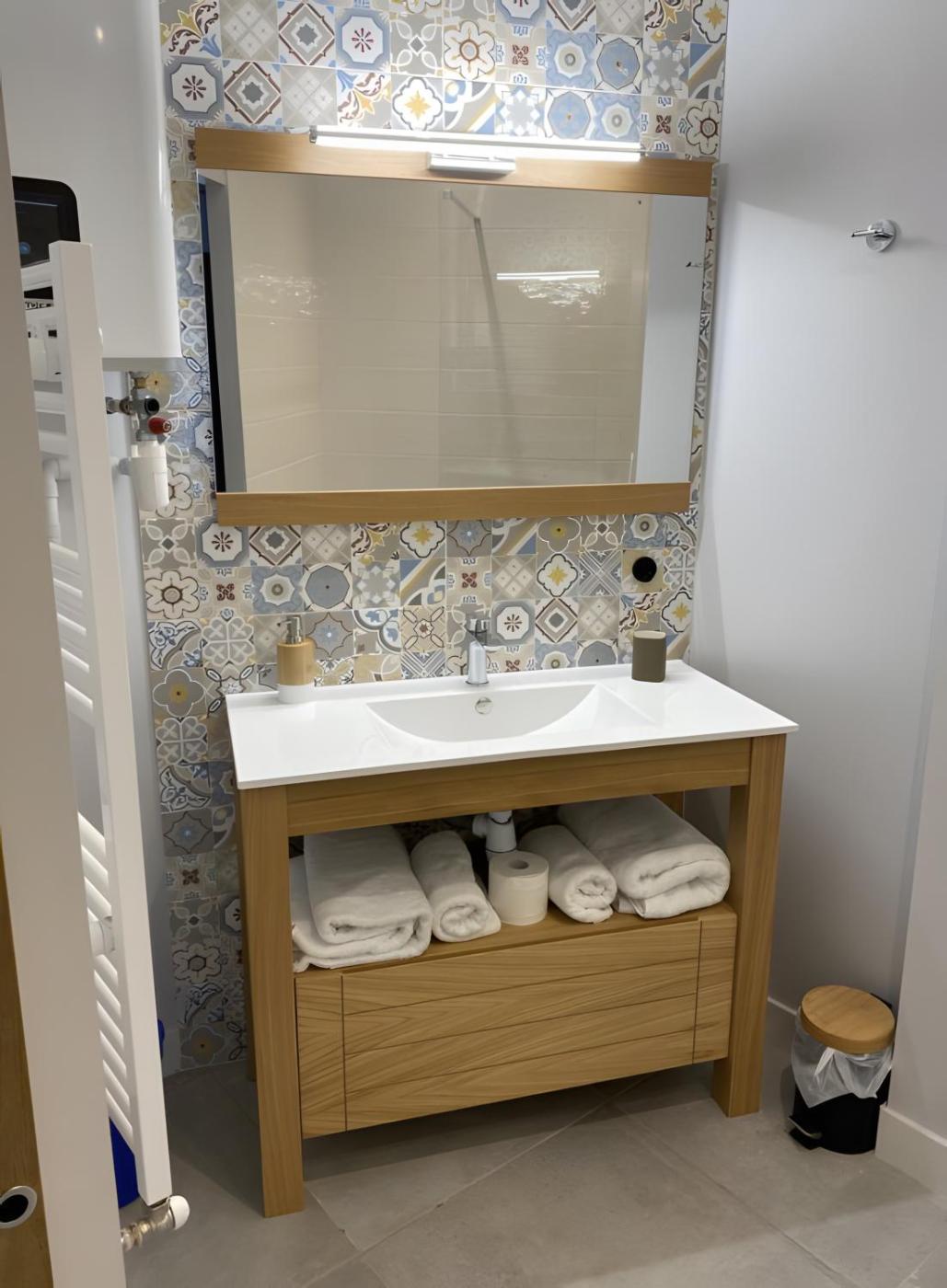 Vous bénéficierez d’une salle de bains privative entièrement équipée avec une douche et des articles de toilette gratuits.