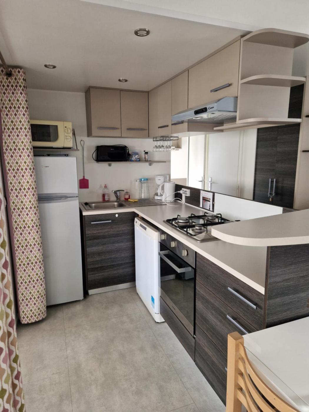 Mobile Home. This mobile home is comprised of 1 living room, 3 separate bedrooms and 1 bathroom with a shower and a hairdryer. This mobile home features a tea and coffee maker, a seating area, a flat-screen TV and an outdoor dining area. The unit offers 6 beds.