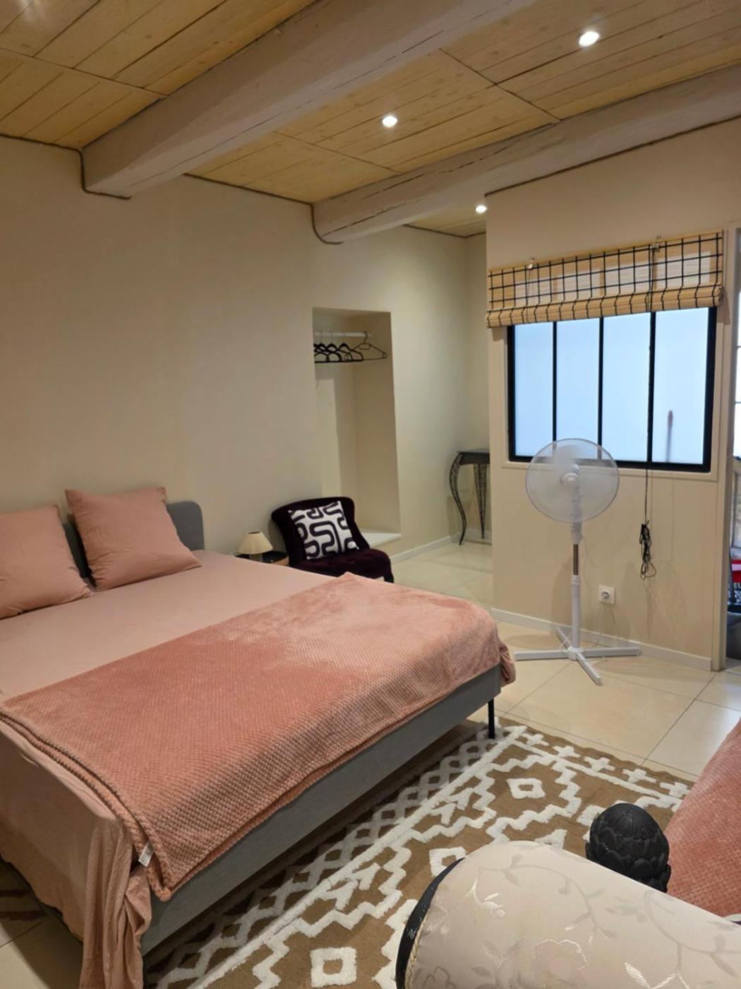Chambre Double. The double room features a private bathroom, a private entrance, a tea and coffee maker, as well as a seating area with a flat-screen TV. The double room provides a dining area, a sofa, a tiled floor, a TV, as well as garden views. The unit offers 1 bed.