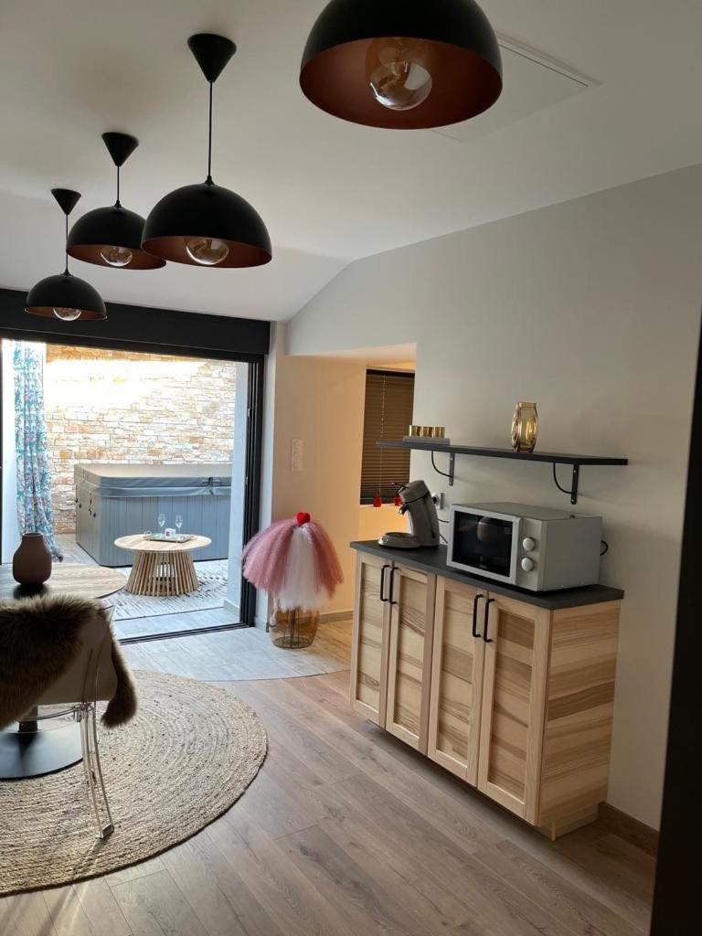 Maison 1 Chambre. This holiday home boasts a private pool and a hot tub. Featuring a private entrance, this air-conditioned holiday home is comprised of 1 living room, 1 separate bedroom and 1 bathroom with a walk-in shower and a hairdryer. In the fully equipped kitchen, guests will find a stovetop, a refrigerator, kitchenware and a microwave. The unit features soundproof walls, ancourtyard view, a terrace and winechampagne is featured for guests. The unit offers 1 bed.
