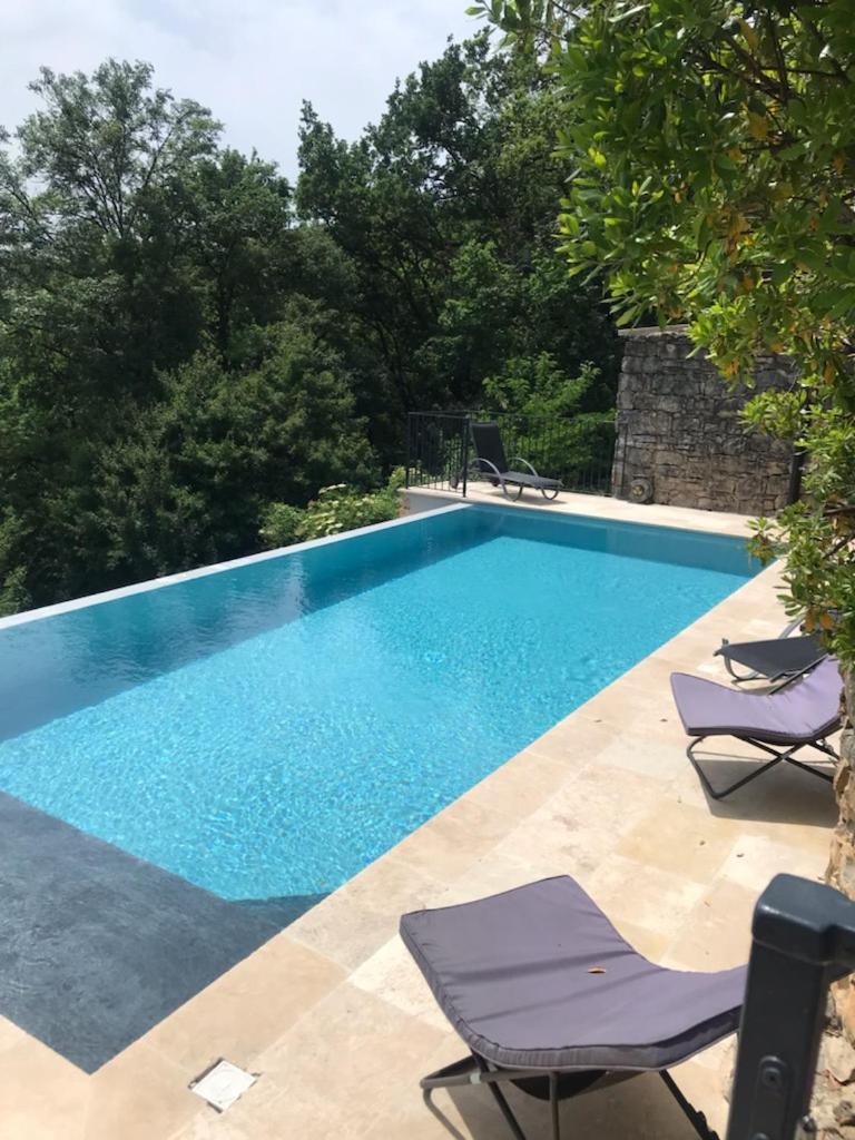 Chambre Double. This double rooms standout features are the pool with a view and hot tub. The double room offers a private entrance, a tea and coffee maker, a terrace with garden views as well as a private bathroom boasting a walk-in shower. The unit has 1 bed. ;