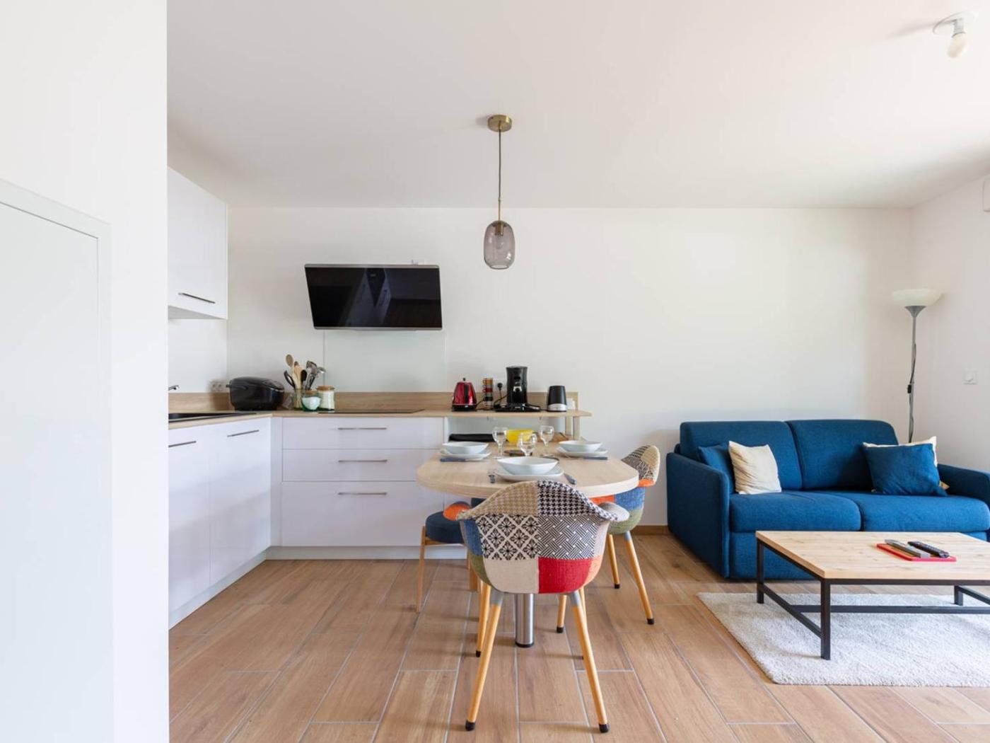 Appartement. Featuring a private entrance, this apartment comprises a kitchen, 2 bedrooms and 1 bathroom with a shower and a hairdryer. The well-equipped kitchen features a stovetop, a refrigerator, a dishwasher and kitchenware. This apartment has a washing machine, a coffee machine, a TV and a balcony. The unit offers 3 beds.