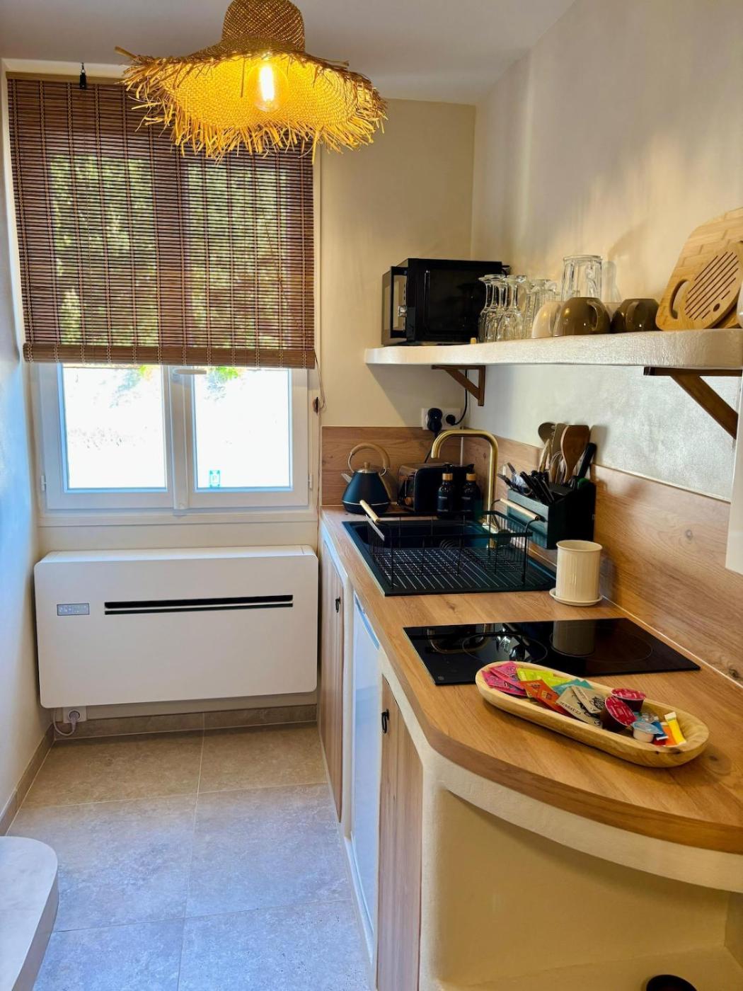 Appartement 1 Chambre. Guests will have a special experience as this apartment features a hot tub and a spa bath. The air-conditioned apartment features 1 bedroom and 1 bathroom with a walk-in shower and a hairdryer. The fully equipped kitchen has a stovetop, a refrigerator, kitchenware and a microwave. The apartment offers a flat-screen TV with streaming services, soundproof walls, a coffee machine, a dining area as well as ancourtyard view. The unit offers 1 bed.