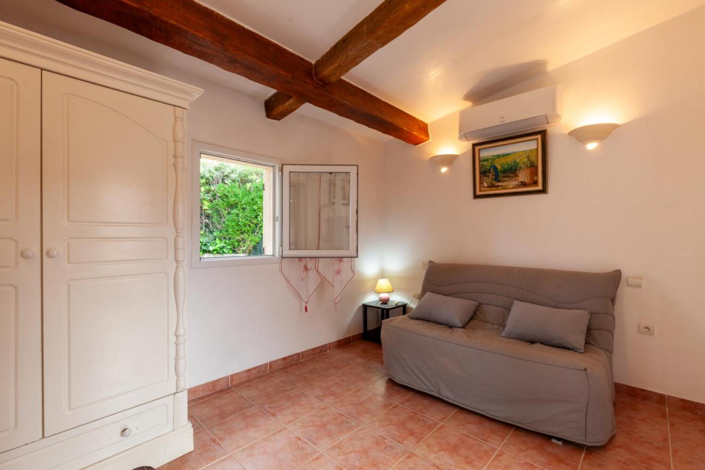 Appartement Supérieur 1 Chambre. Boasting a private entrance, this air-conditioned apartment comes with 2 living rooms, 1 separate bedroom and 1 bathroom with a shower and a hairdryer. Guests will find kitchenware, an oven, a microwave and a toaster in the fully equipped kitchen. The apartment also includes a barbecue. Featuring a terrace with garden views, this apartment also features a coffee machine and a TV with cable channels. The unit has 3 beds.