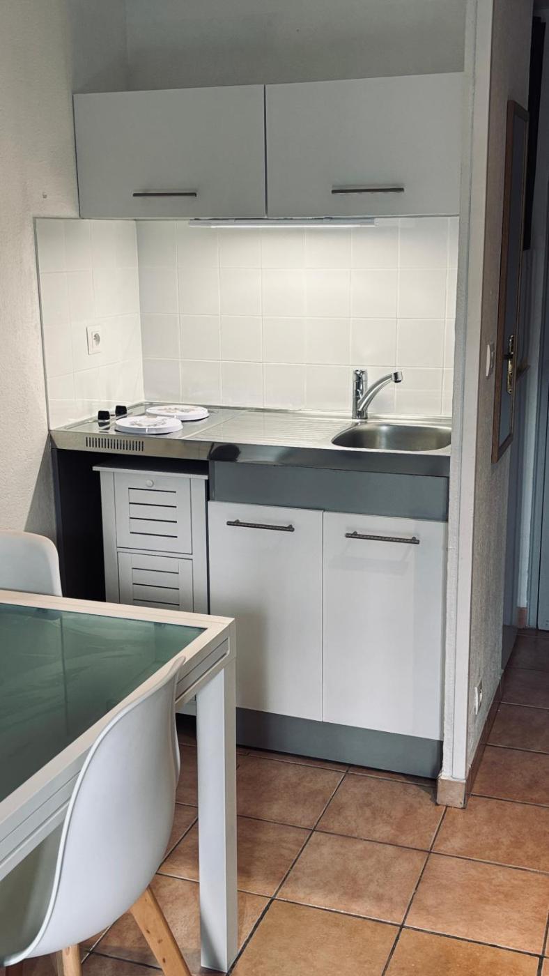 Studio avec Terrasse. Guests can make meals in the kitchenette that has a stovetop, a refrigerator, kitchenware and a microwave. This air-conditioned studio is comprised of a flat-screen TV with streaming services, a private bathroom as well as a terrace. The unit has 2 beds.