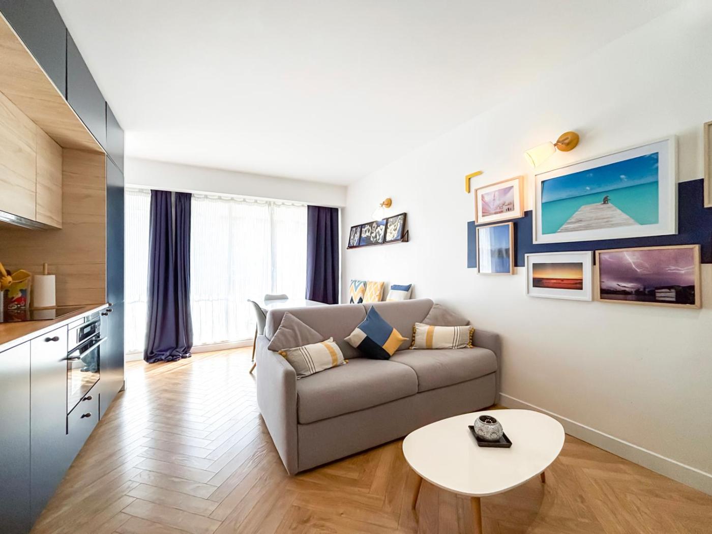 Appartement 1 Chambre. This apartment includes 1 living room, 1 separate bedroom and 1 bathroom with a bath and a hairdryer. The fully equipped kitchen features a refrigerator, a dishwasher and a microwave. This apartment has a washing machine, a coffee machine, a flat-screen TV and a balcony. The unit has 2 beds.