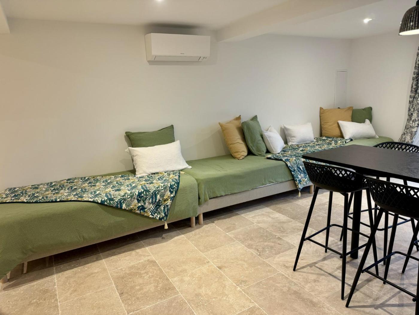 Studio - Vue sur Mer. Guests will find a stovetop, a refrigerator, a dishwasher and kitchenware in the kitchen. The studio also features a barbecue. The spacious studio offers air conditioning, a washing machine, a terrace with sea views as well as a private bathroom boasting a walk-in shower. The unit has 3 beds. ;