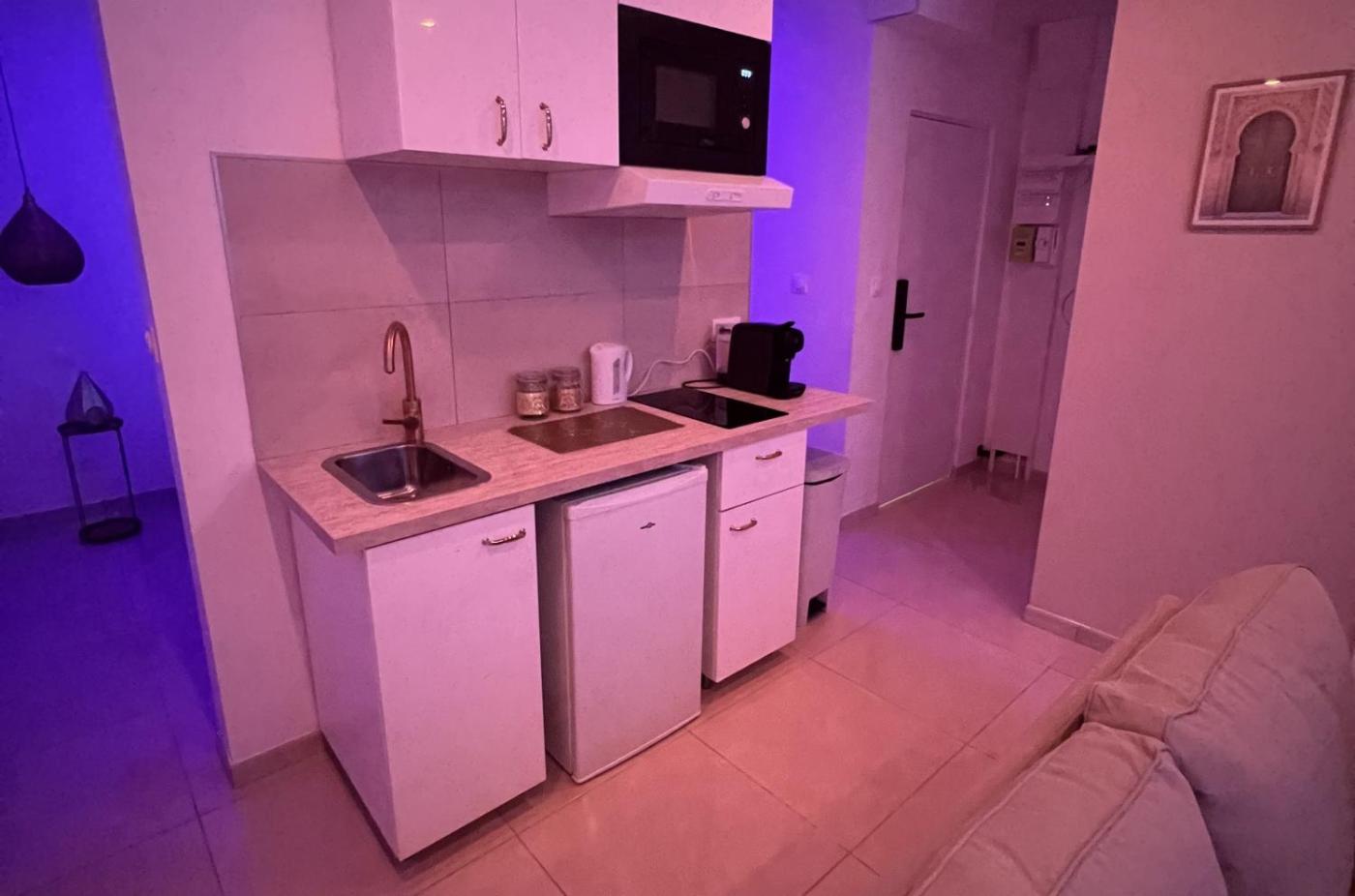 Chambre Double. La chambre double est dotée dun coffre-fort, dun canapé et dune salle de bains privative avec une douche. Vous pourrez préparer vos repas dans la kitchenette équipée de plaques de cuisson, d’un réfrigérateur, d’un micro-ondes et d’ustensiles de cuisine. Cet hébergement dispose dun plateaubouilloire, dun coin salon, dun coin repas, dune armoire et dune télévision à écran plat avec des services de streaming. Le logement comporte un lit. ;