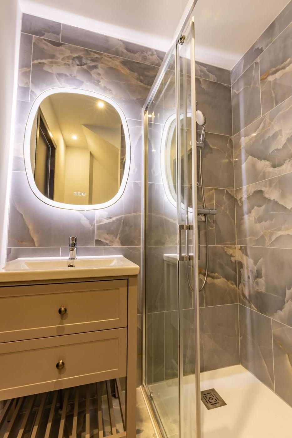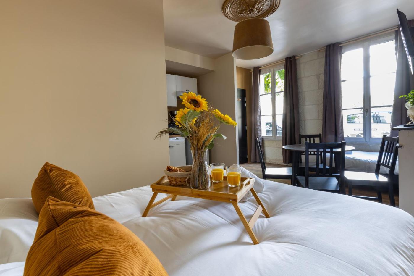 Appartement 1 Chambre. This apartment features 1 bedroom, a kitchen and 1 bathroom with a shower. The well-equipped kitchen has a stovetop, a refrigerator, kitchenware and a microwave. The apartment features a coffee machine, a dining area, a high chair for children, heating, as well as a TV. The unit has 2 beds.