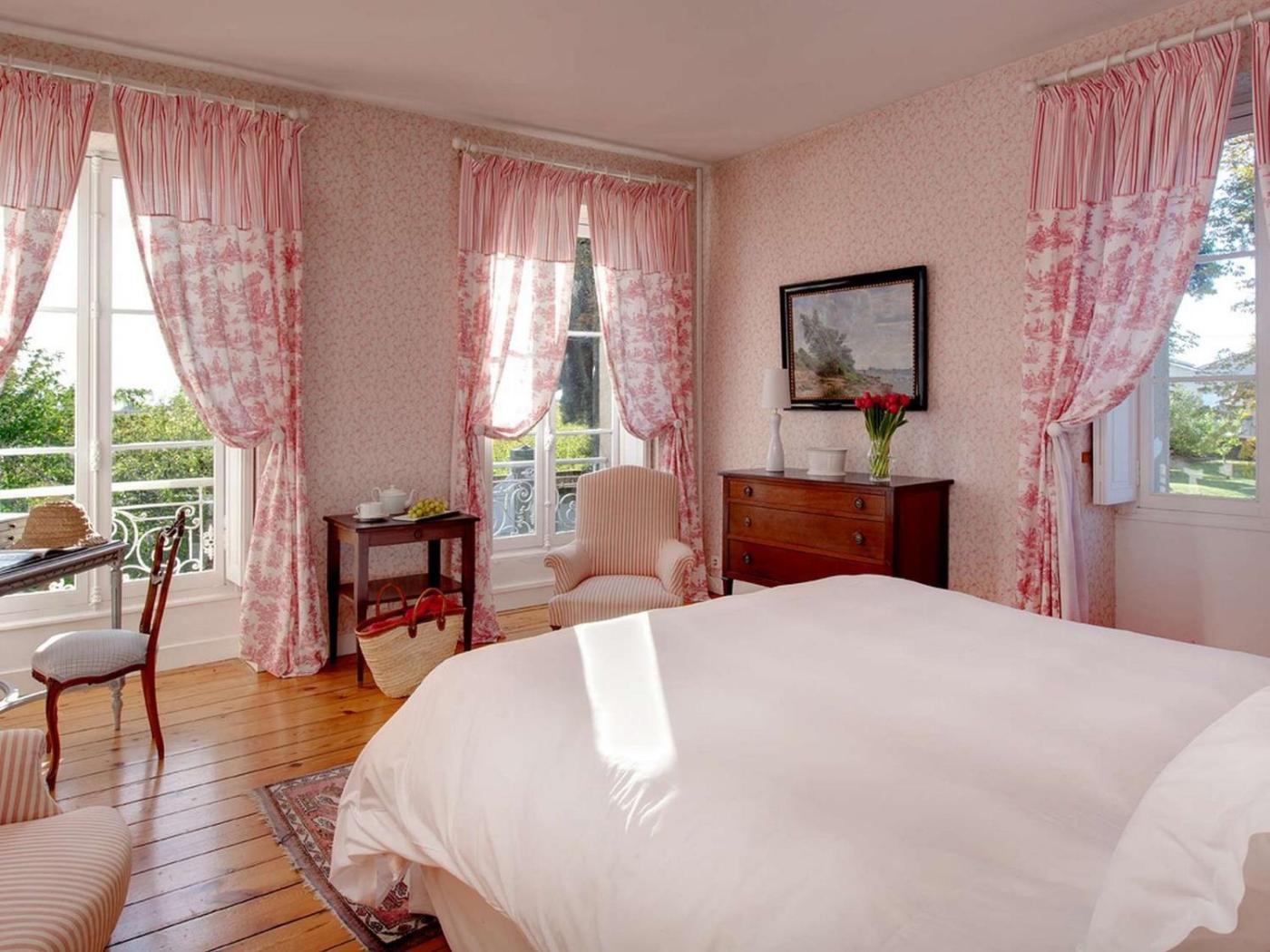 Toutes les chambres chauffées et climatisées du Château Ormes de Pez offrent une vue sur le jardin et disposent dune télévision à écran plat. La salle de bains privative est pourvue dune baignoire ou dune douche et darticles de toilette gratuits. Une blanchisserie est disponible sur place.