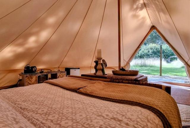 Luxe tent met goed bed, prive sanitair en laadpaal