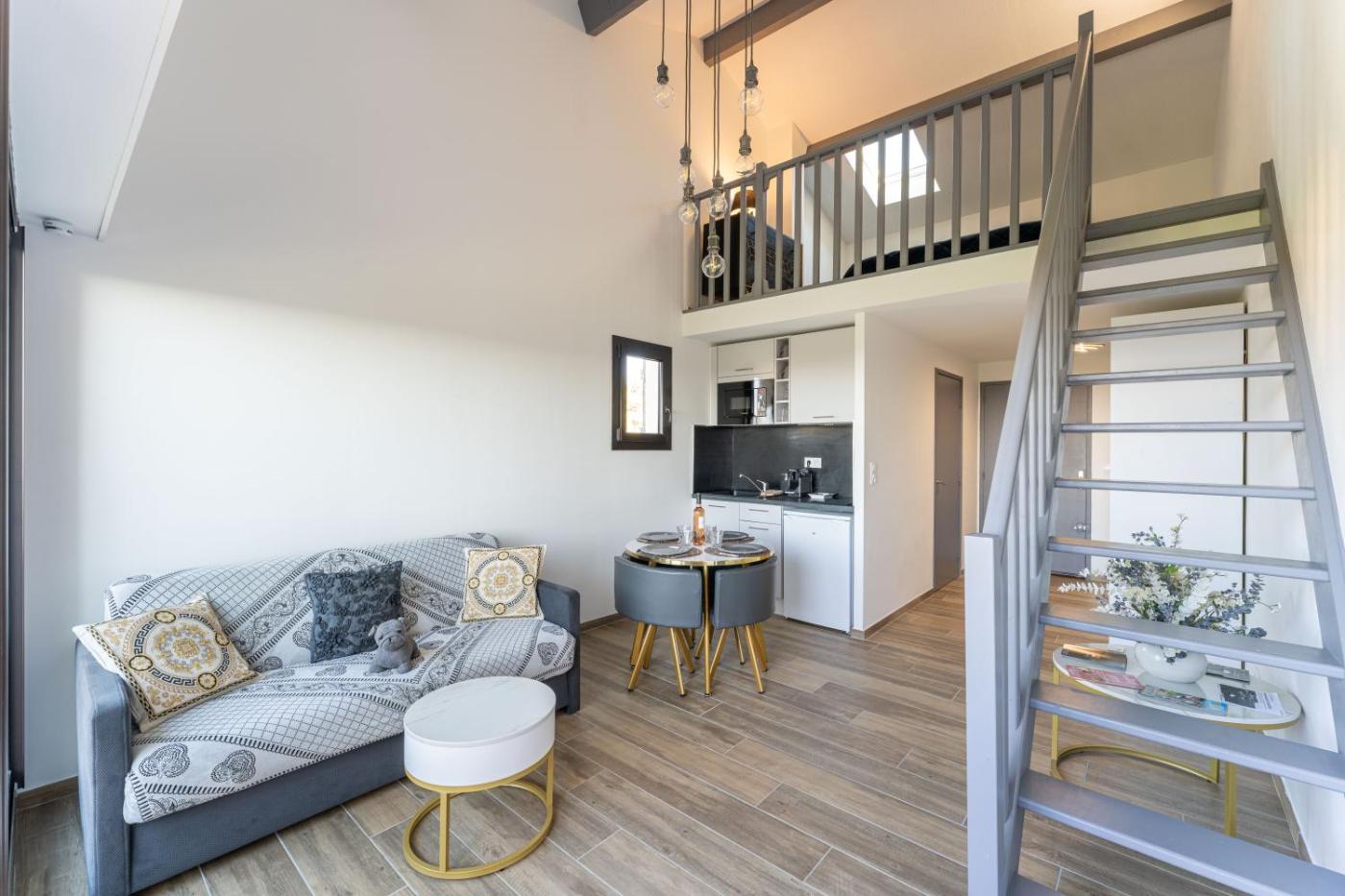 Cet appartement avec climatisation se compose de 1 chambre, dun salon, dune kitchenette entièrement équipée avec un réfrigérateur et une machine à café, ainsi que de 1 salle de bains avec une douche et des articles de toilette gratuits. Des serviettes et du linge de lit sont mis à votre disposition.