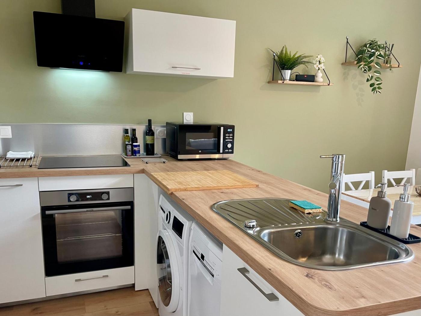 Appartement 1 Chambre. Boasting a private entrance, this apartment includes 1 living room, 1 separate bedroom and 1 bathroom with a shower and a hairdryer. In the fully equipped kitchen, guests will find a stovetop, a refrigerator, a dishwasher and kitchenware. This apartment has a washing machine, a minibar, flat-screen TV with streaming services, as well as winechampagne for guests. The unit has 2 beds.