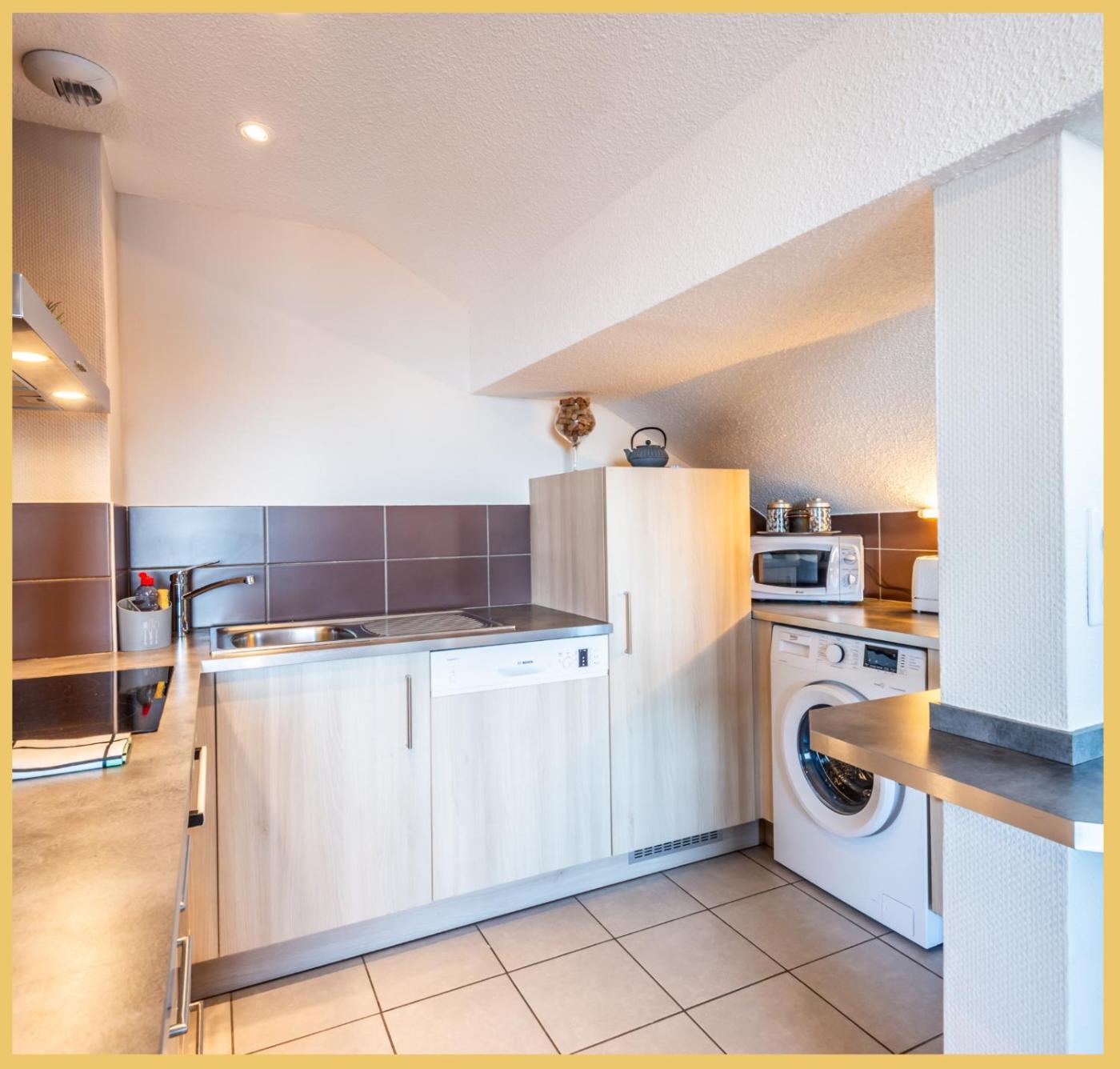 Appartement 1 Chambre. This apartment comes with 1 living room, 1 separate bedroom and 1 bathroom with a shower and a hairdryer. Guests can make meals in the kitchen that features a stovetop, a refrigerator, a dishwasher and kitchenware. Boasting a balcony with lake views, this apartment also features a washing machine and a flat-screen TV. The unit has 2 beds.